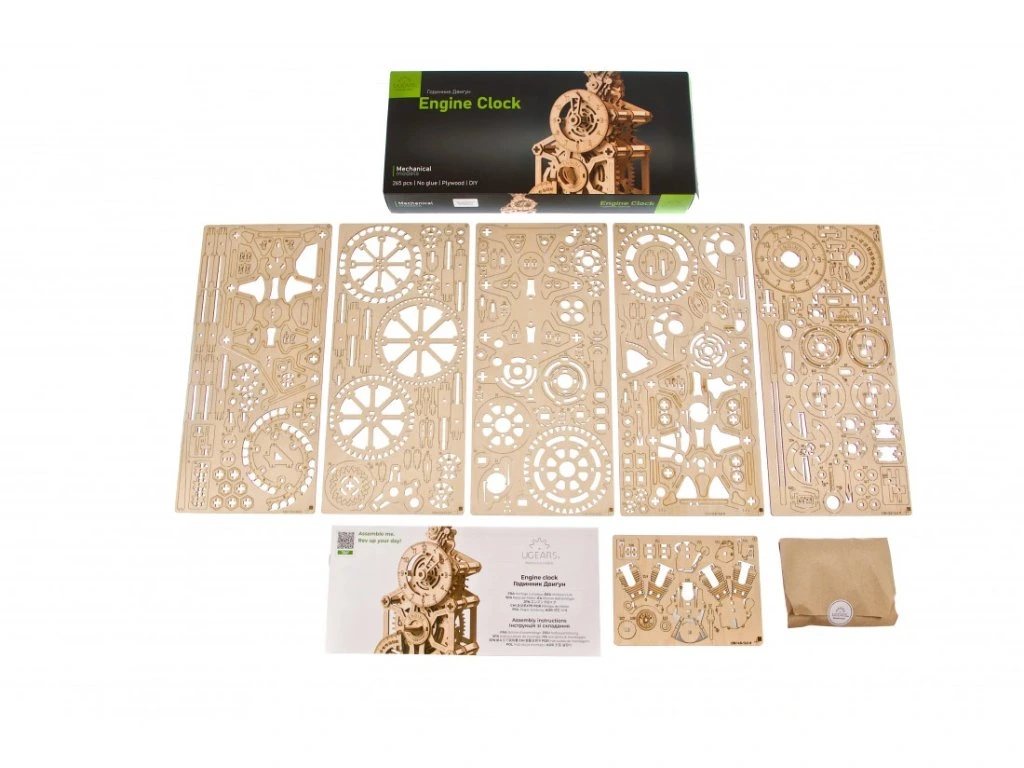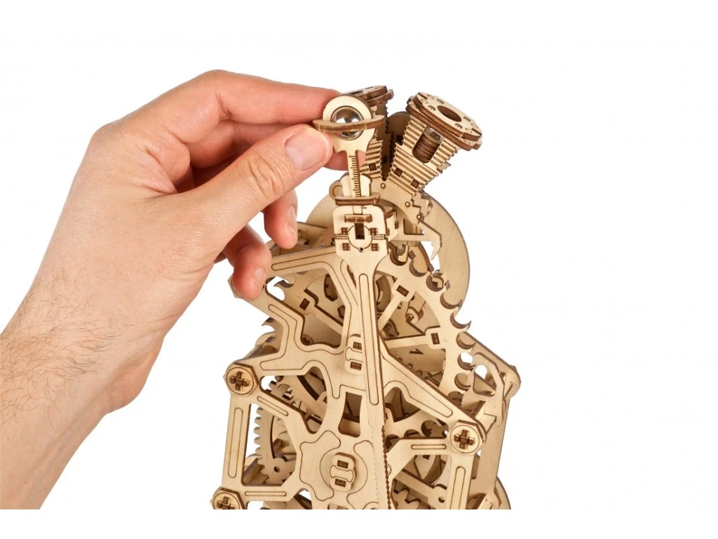 Tento "udělej si sám" dřevěný Hodinový Motor je nejnovější přírůstek do kolekce funkčních hodín UGEARS, včetně nástěnných hodín Aero Clock s kyvadlem a stolních hodín Sky Watcher Tourbillon. Zatímco tyto modely jsou na "pokročilé" úrovni, Hodinový Motor byl navržen tak, aby byl funkční hodinový stroj na "střední" úrovni obtížnosti, umožňující tak více hobbyistům zažít uspokojení ze sestavení vlastních funkčních DIY 3D modelových hodín. Jako u všech modelů UGEARS, Hodinový Motor se montuje bez lepidla nebo speciálních nástrojů - jednoduše odstraníte laserem předřezané díly z jejich desek z kompozitního dřeva a spojíte je dohromady. Každá sada obsahuje podrobný, krok za krokem, barevně ilustrovaný návod v 11 jazycích (ukrajinština, angličtina, němčina, francouzština, polština, španělština, portugalština, italština, čínština, japonština a korejština) na usměrnění vaší montáže a brusné papíry a vosk na vyhladění a mazání všech pohyblivých částí pro optimální funkci. Pokud narazíte během montáže na problém, potřebujete pomoc při řešení problémů nebo poškodíte kus během montáže, jednoduše napište našemu vynikajícímu zákaznickému servisu – rádi odpovíme na jakékoliv otázky nebo pošleme náhradní díly zdarma!