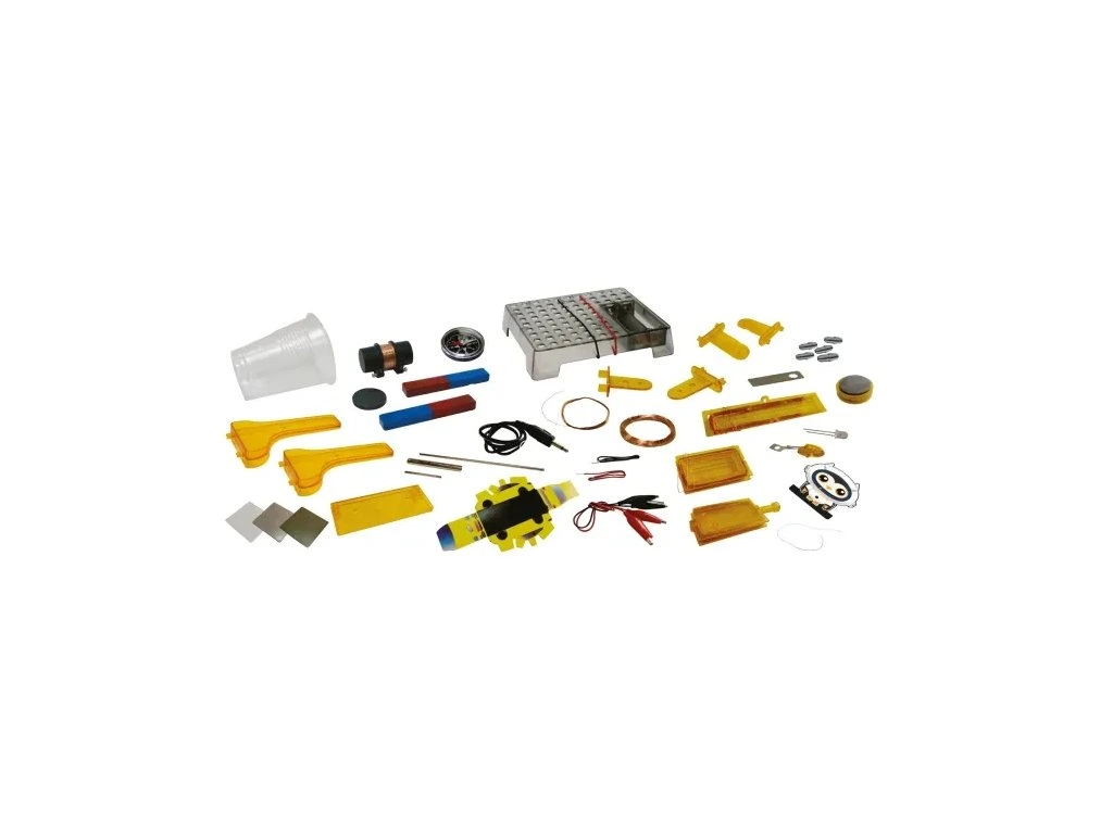 Sada s podrobným návodem pro pokusy s magnety a elektřinou, díky které si děti sestaví elektromotor, houpačku a generátor a vyzkouší dalších 9 zábavných experimentů. Ideální pomůcka na výuku fyziky hravou formou.