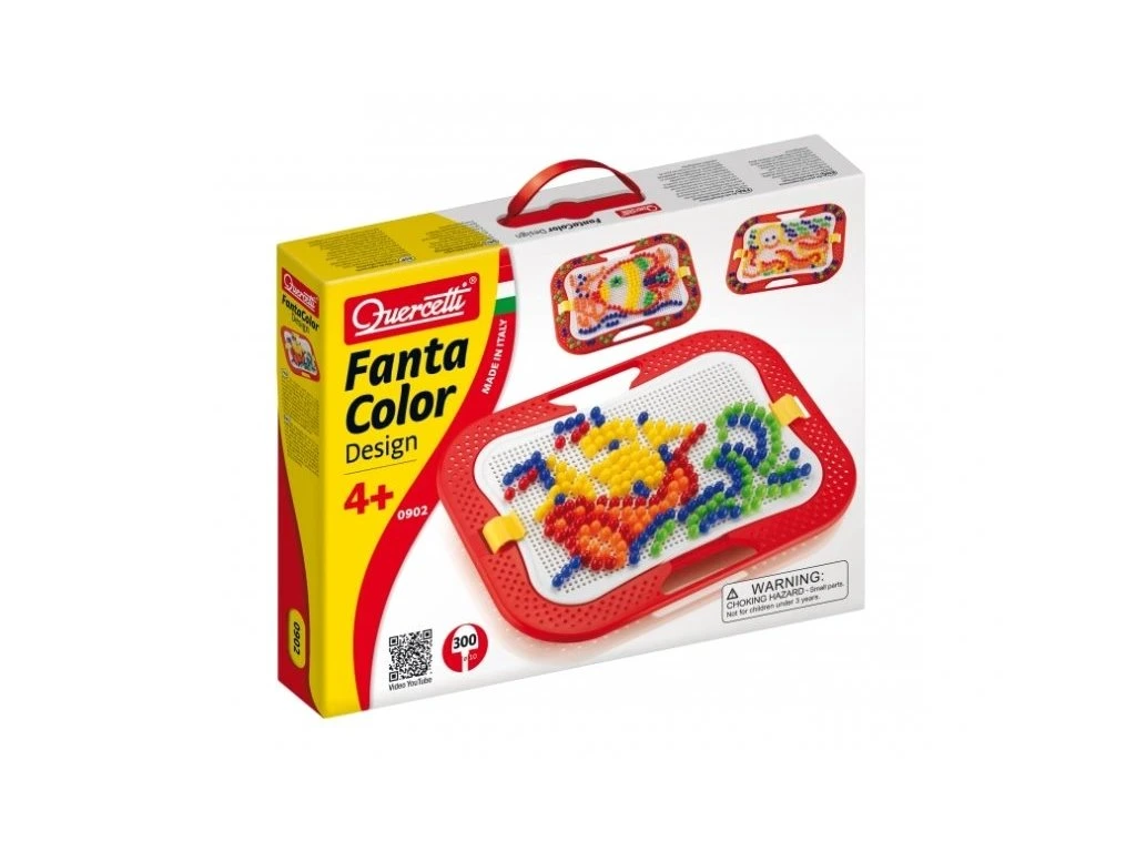 Quercetti Fantacolor Design je mozaiková hračka, která dětem pomáhá rozvíjet jemnou motoriku, tvořivost a fantazii.