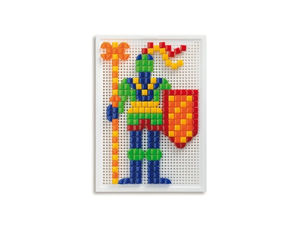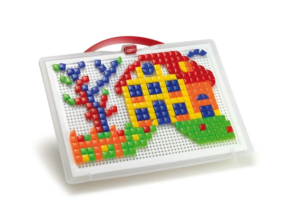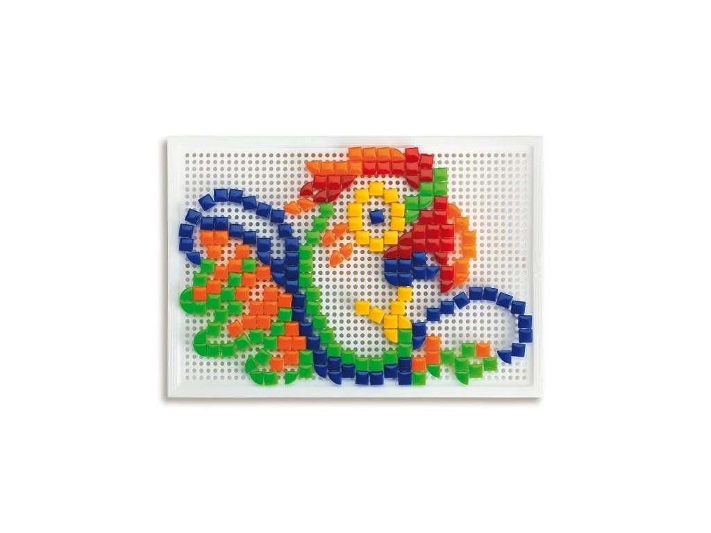 Mozaiky u dětí rozvíjejí jemnou motoriku, tvořivost a fantazii. Sada obsahuje kufřík, děrovanou hrací desku a barevné kolíčky s hlavičkami různých barev, průměrů a tvarů. Pomocí těchto kolíčků mohou děti tvořit různé obrázky nebo vzory.