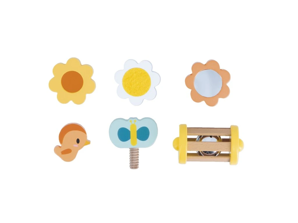 - 6 doplňků: magnetický ptáček, chrastítko, motýlek, 3 květiny