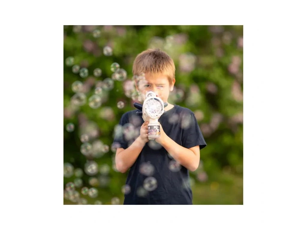 Záplava bublin s Galaktickou pistolí zabaví děti už od 3 let! Tato svítící elektrická pistole s doplňovacím zásobníkem přinese nekonečné množství bublinové zábavy a zároveň je šetrná k životnímu prostředí.
