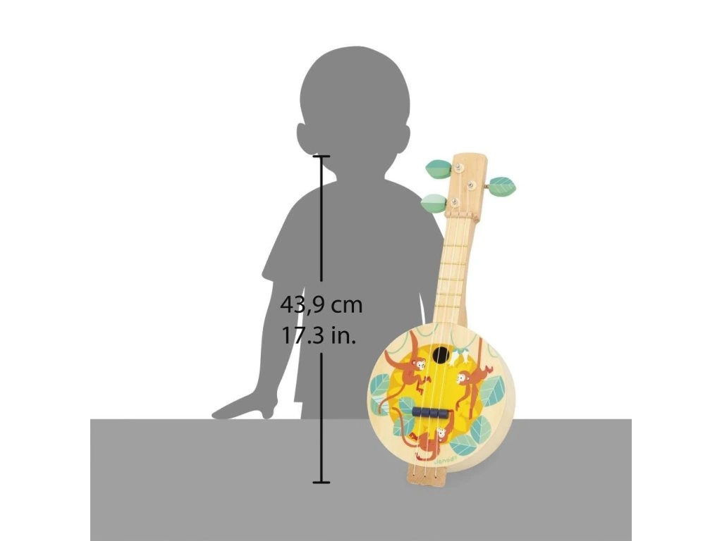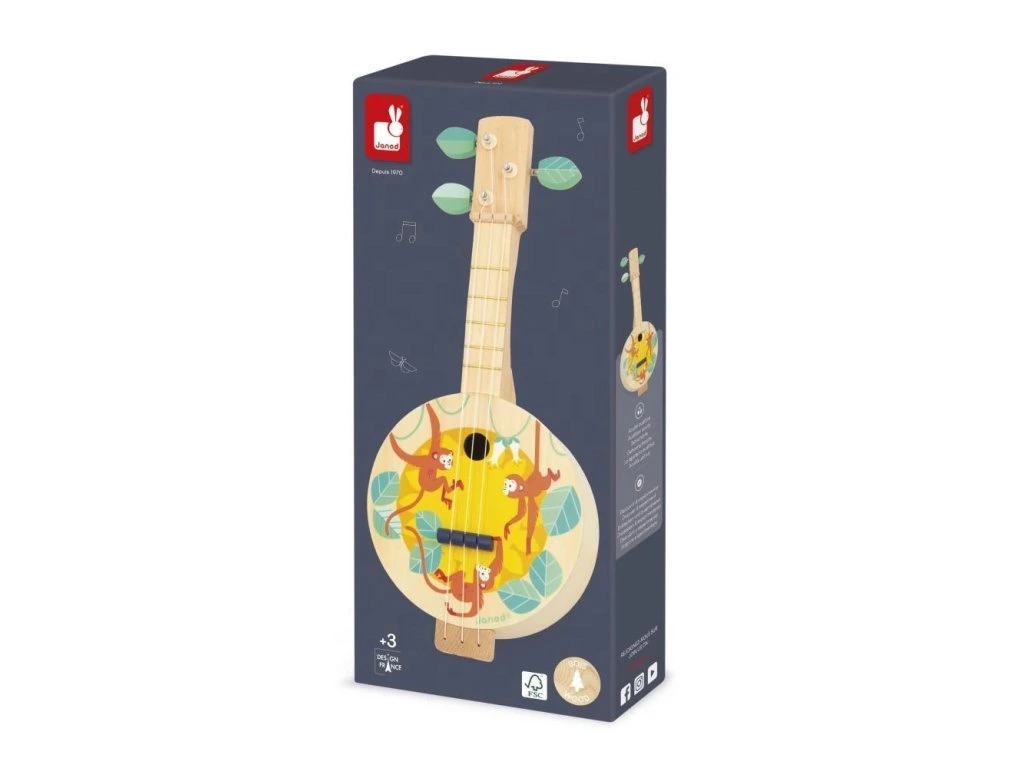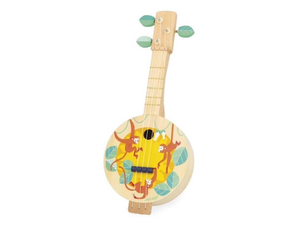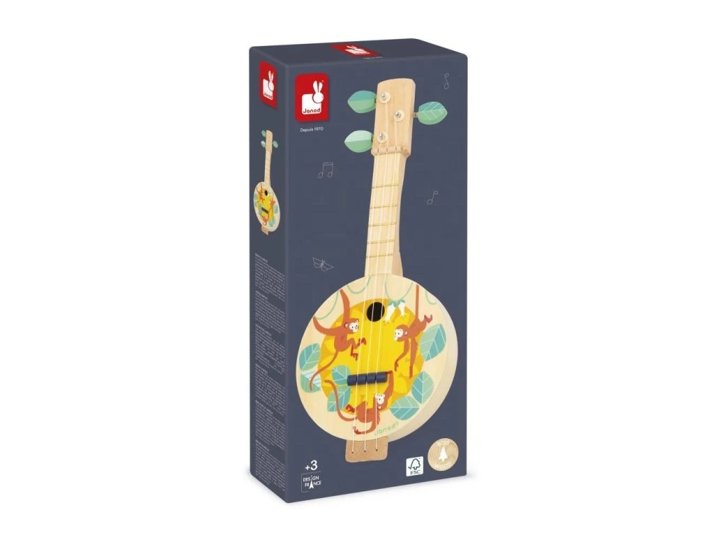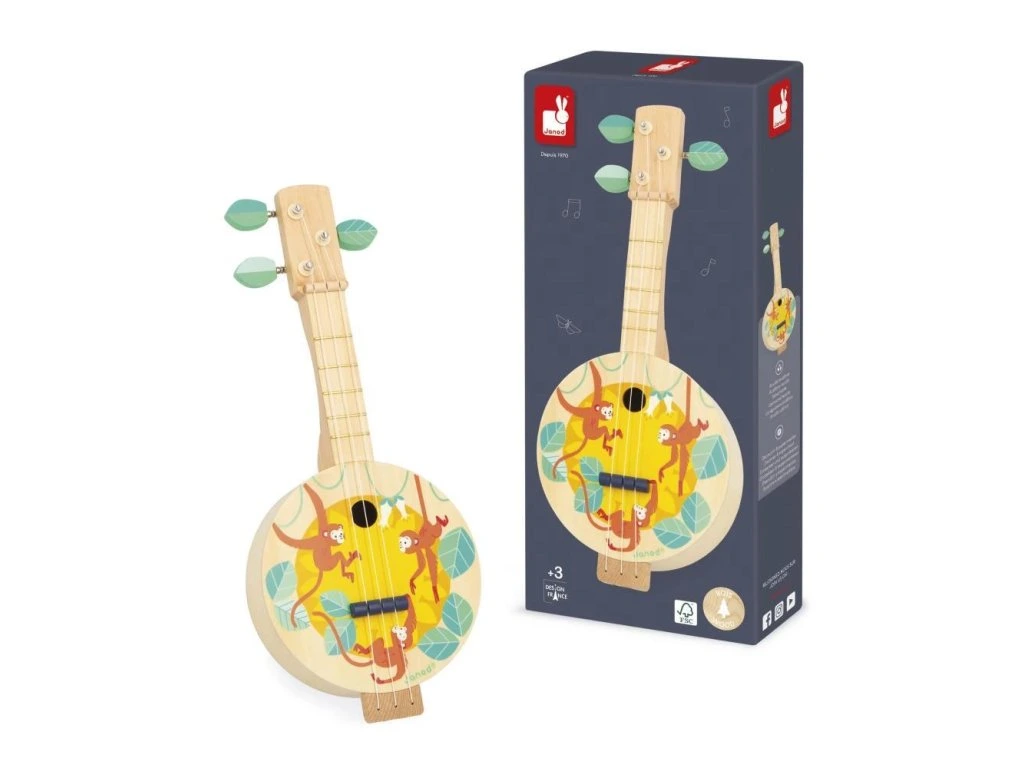Dřevěné bendžo Janod Gioia je ideálním prvním hudebním nástrojem pro děti, které se chtějí seznámit se světem hudby. Díky kvalitnímu zpracování a realistickému zvuku podporuje rozvoj rytmiky, hudebního sluchu a jemné motoriky.