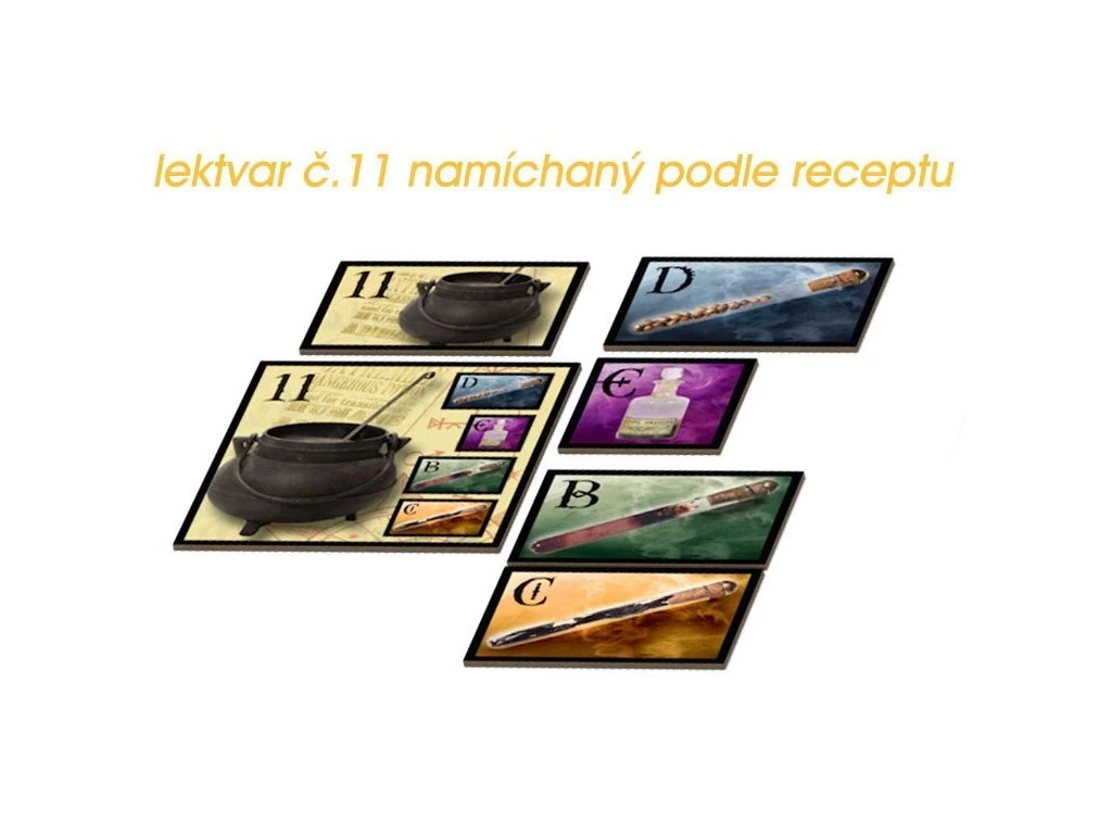 Cílem hry je vyrobit co nejvíce ze 16 lektvarů podle přiložených receptů. Nejprve najdete druh lektvaru a dostanete příslušný recept, který vám předepisuje, které přísady potřebujete. Kartičky s kazícími přísadami můžete „nadělit" soupeři, čímž znehodnotíte vaše míchání elixíru. Kartička Učebnice elixírů pro pokročilé vás nejen chrání před kazícími přísadami, ale urychluje samotné míchání elixíru. Hra končí dokončením posledního lektvaru. Vyhrává hráč s nejvyšším počtem dokončených elixírů.
