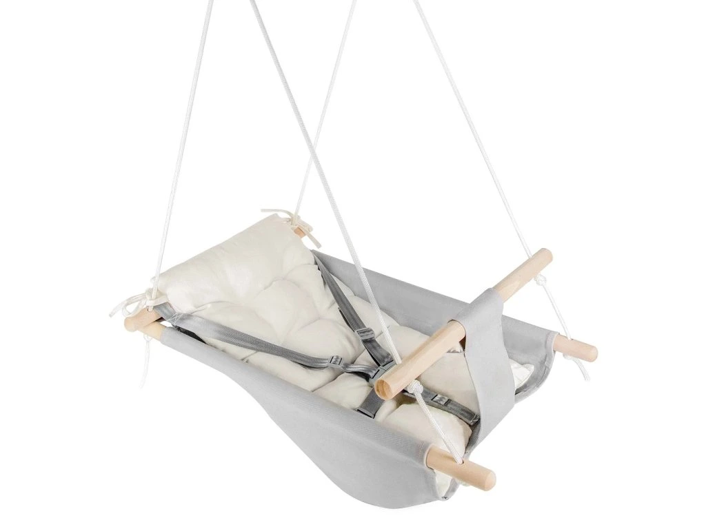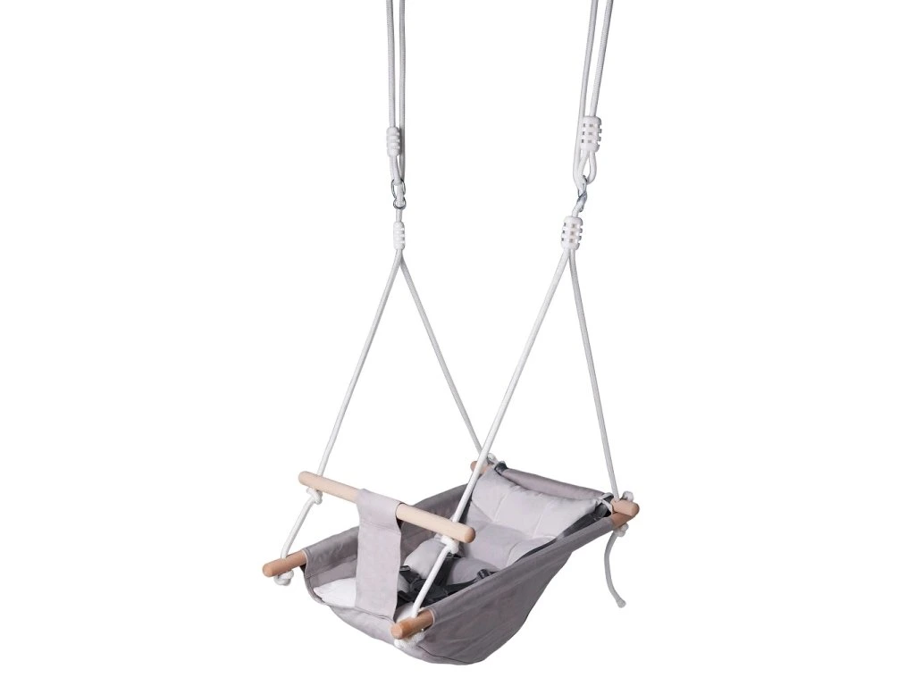 Dřevěná konstrukce a sedátko ze 100 % bavlny zaručují pohodlí a bezpečnost při houpání. Díky tlumeným barvám a jednoduchému modernímu designu se zároveň stává pěkným doplňkem do dětského pokoje.