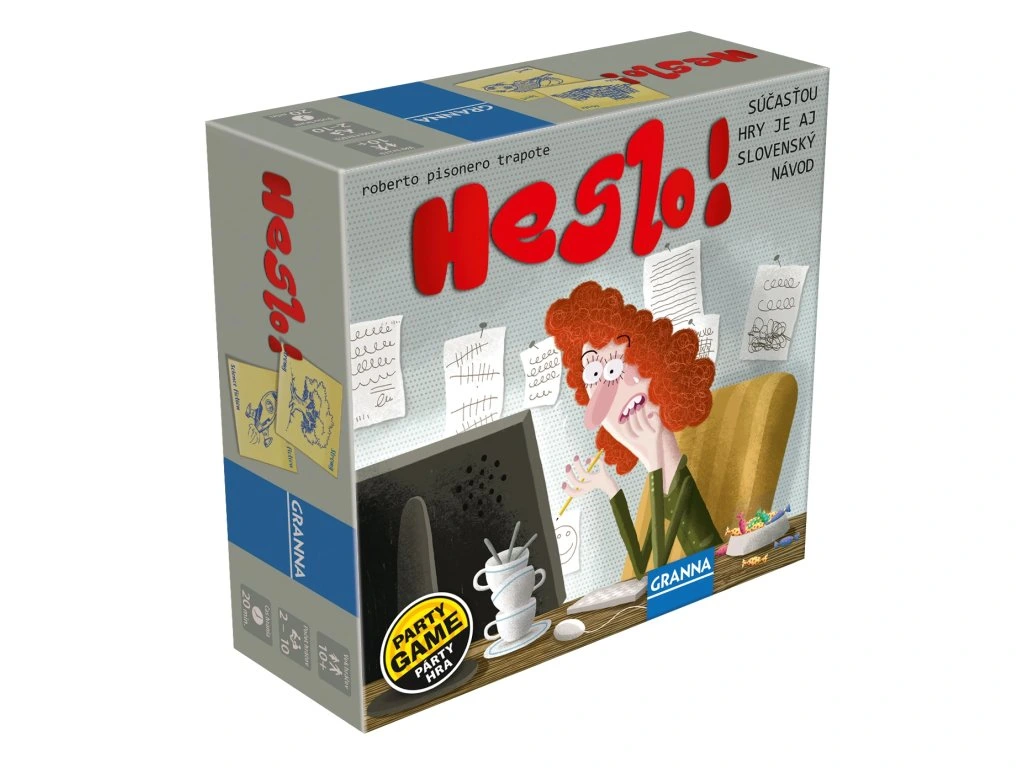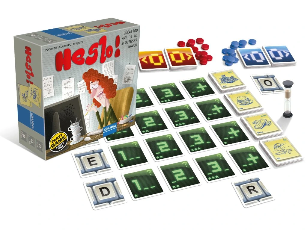 Vstupte do světa slov a rychlého myšlení se hrou Heslo! Tato bláznivá párty hra je určená pro 2 týmy, které soupeří o to, kdo dokáže najít více slov podle zadané kategorie a s určeným písmenem na konkrétní pozici. Hráči rozloží karty s pozicemi písmen, tématy a bodováním. Když se hra začne, všichni členové týmu naráz hledají a vymýšlejí slova, která splní kritéria, a to vše pod tlakem časového limitu, který odměřují přesýpací hodiny. Hra Heslo! prověří vaši kreativitu, postřeh a schopnost rychle reagovat!Obsah balení: