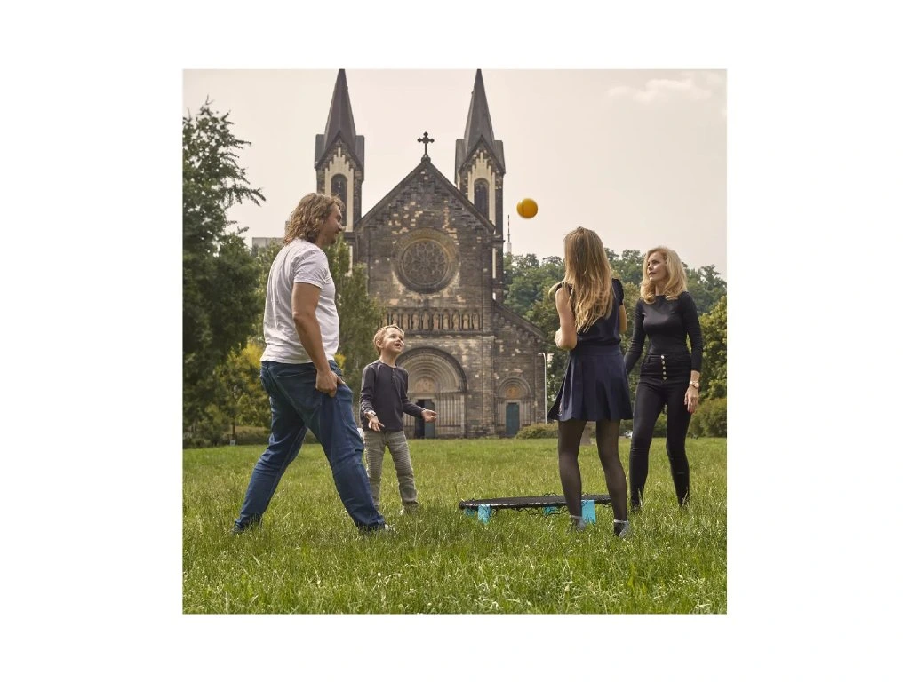 Smash Ball je dynamická hra pro venkovní aktivity, ideální na zahradu, do parku nebo na pláž. Hrají 2 týmy po 2 hráčích, kteří se snaží skórovat údery balónu přes napnutou síť.