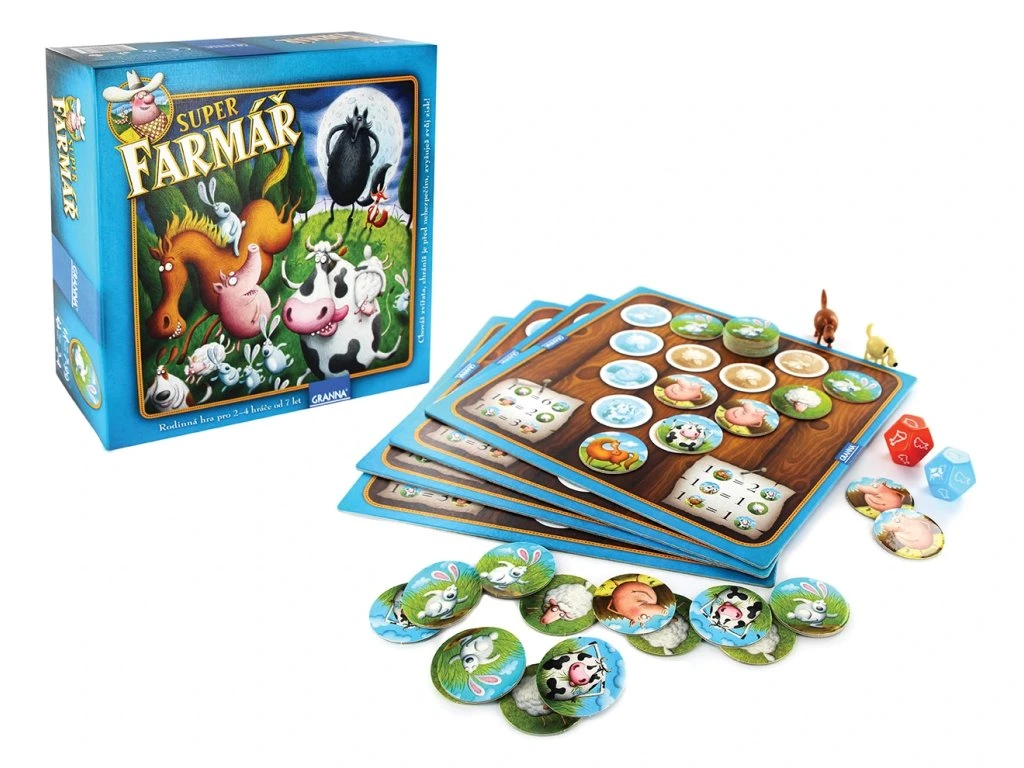 Ve hře Superfarmář de luxe se stanete chovatelem zvířat, jehož cílem je vybudovat co největší stádo a stát se superfarmářem. Vaše stádo se neustále rozrůstá, ale musíte být ostražití – okolo se potulují liška a vlk, kteří mohou vaše zvířata ohrozit! Tato nová, barevnější a prostornější verze hry byla vytvořena při příležitosti 10. výročí obnovení výroby a přináší novou, dynamičtější herní variantu.Hra je založena na principech matematiky a logiky, takže hráči musí počítat, předvídat, plánovat a kalkulovat s riziky. Superfarmář de luxe podporuje strategické myšlení a je skvělá pro děti i dospělé.