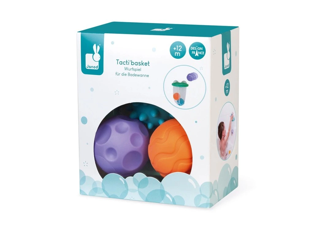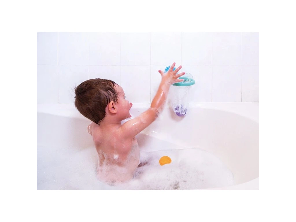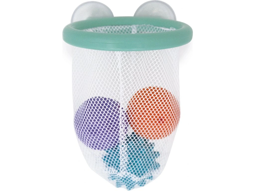 Užijte si koupání plné pohybu a zábavy! Tato vodní hračka obsahuje basketbalový koš, který se snadno připevní na stěnu vany, a 3 senzorické míčky. Míčky mají dírky, takže při hodu stříkají vodu, čímž se zábava ještě znásobuje.
