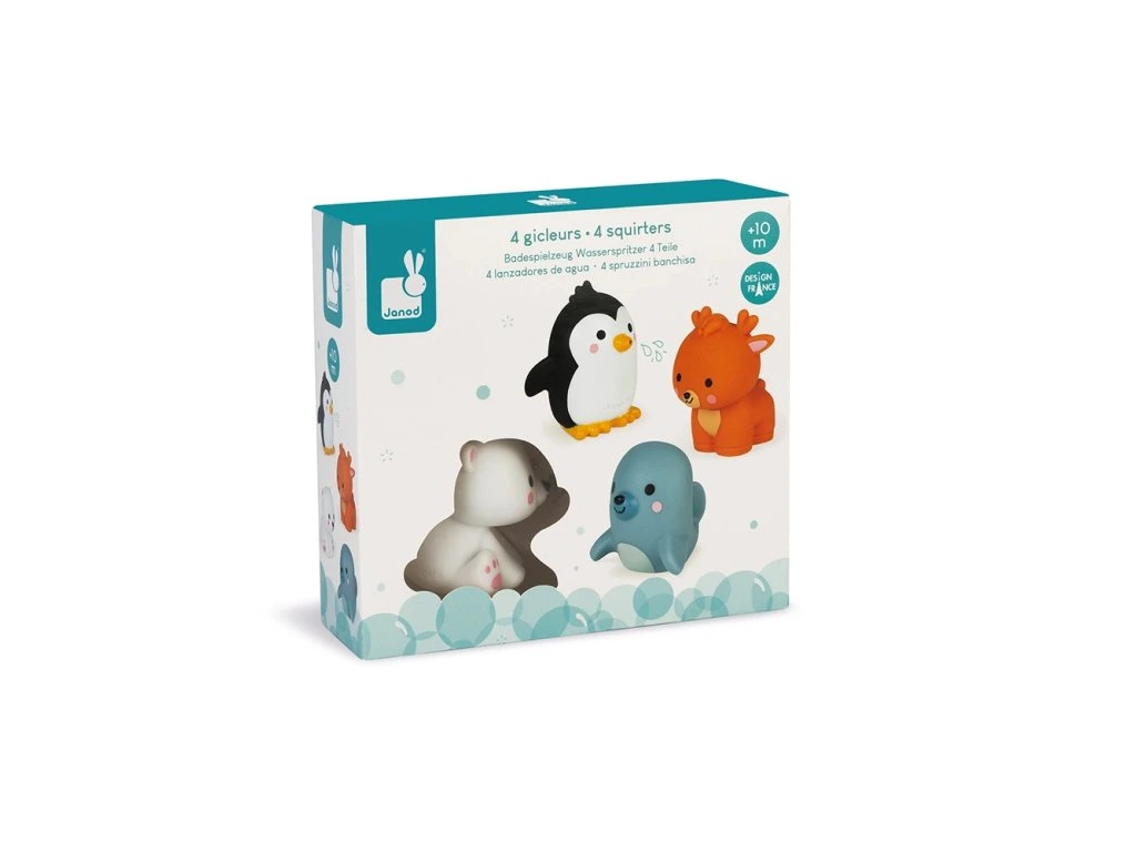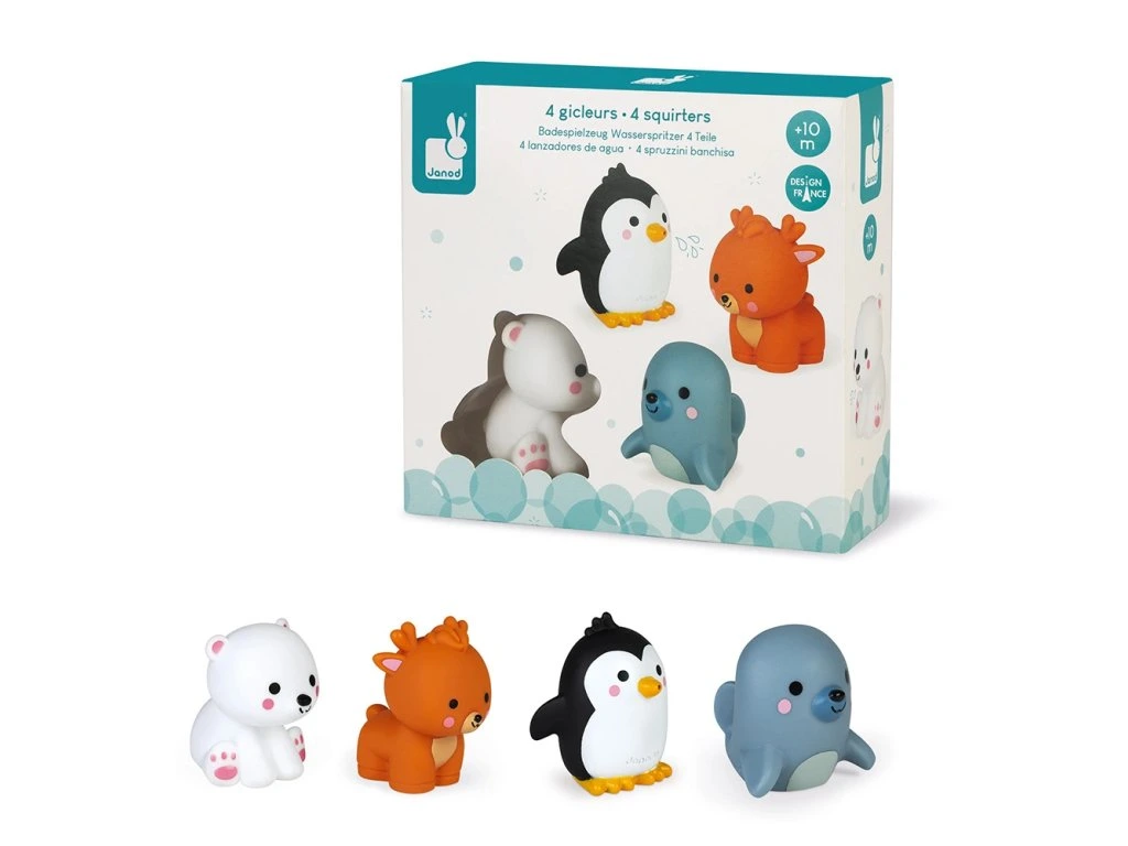 Stříkající zvířátka do vody – Polární zvířátka, 4 ks, Janod Bath Toys