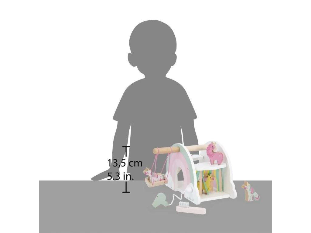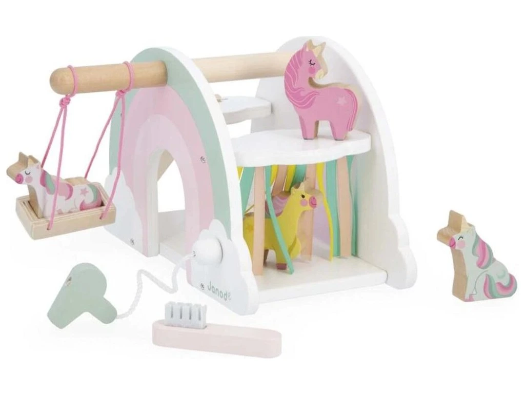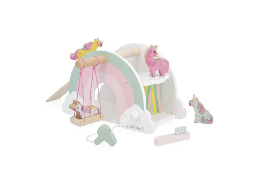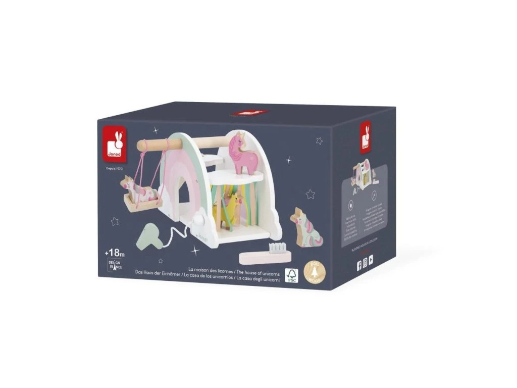 Vstupte do okouzlujícího domu jednorožců! Hrajte si se 4 jednorožci a jejich skluzavkou, objevujte houpačku a tajná překvapení. Vhodné pro děti od 18 měsíců.