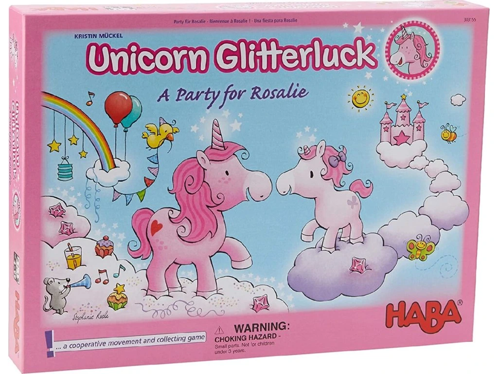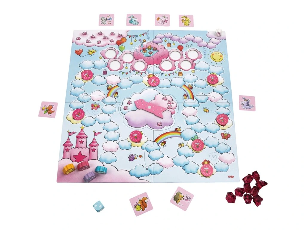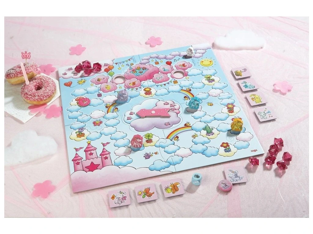 Vstupte do Cloudlandu s babyjednorožcem Rosalie! Pomožte jednorožcům Glitterluck, Stardust, Marvel Flower a Magic Swirl sbírat obláčkové krystaly a přivést všechny na velkou uvítací párty. Hra kombinuje štěstí s kostkami a rotací šipky, ideální pro děti od 4 let.