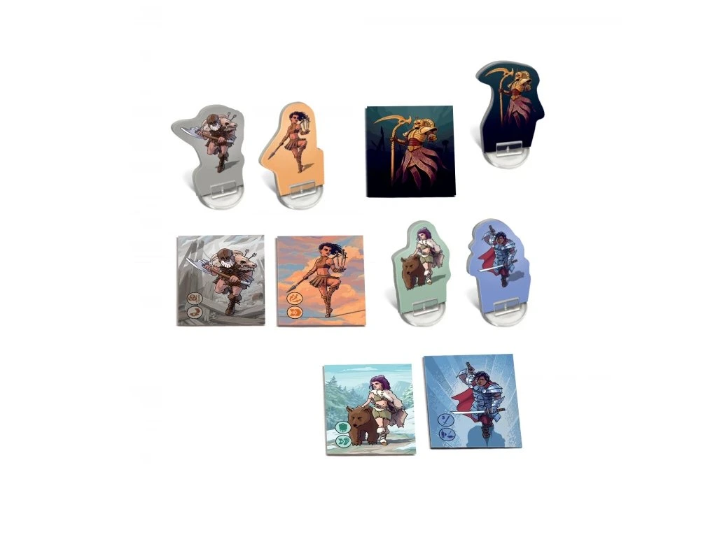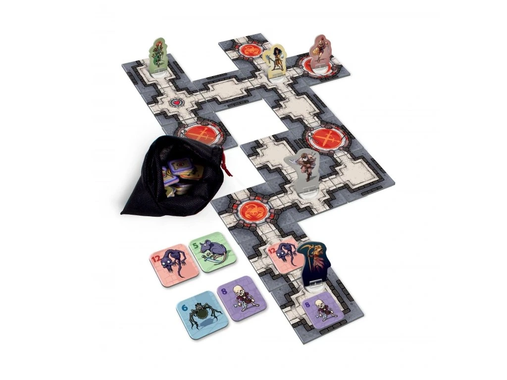 Hra Karak: Regent obsahuje: 18 kartiček katakomb, 5 karet hrdinů, 5 figurek hrdinů, 5 stojánků, 8 žetonů příšer a pravidla v češtině a slovenštině.
