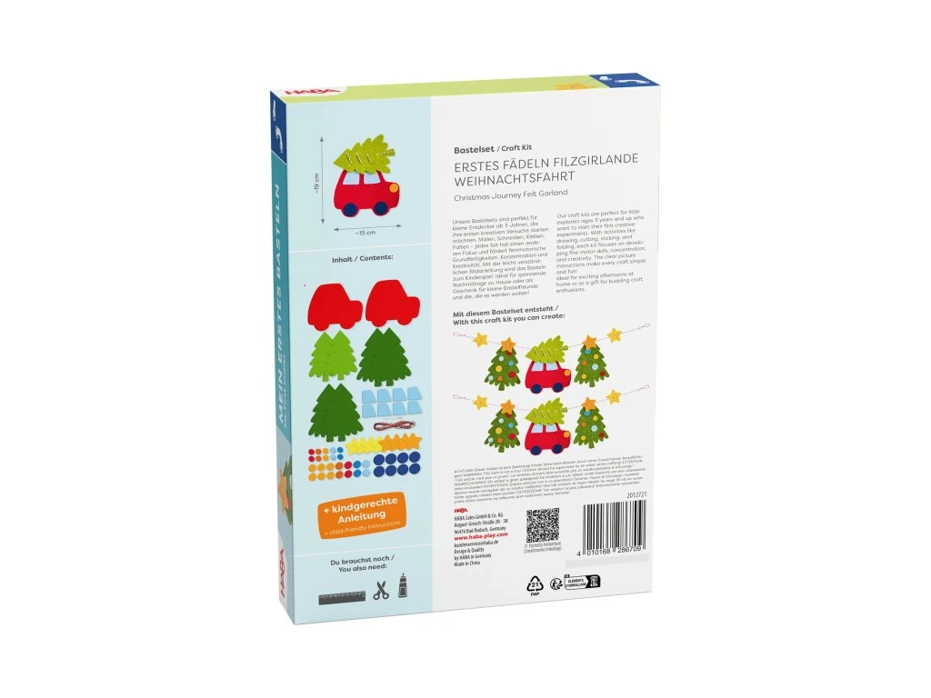 První navlékání – plstěná girlanda Vánoční cesta– ideální kreativní sada pro děti od 3 let, která podporuje jemnou motoriku, koncentraci a první pokusy s navlékáním. Jednoduchá obrázkova instrukce zaručuje vysokou pravděpodobnost úspěchu.