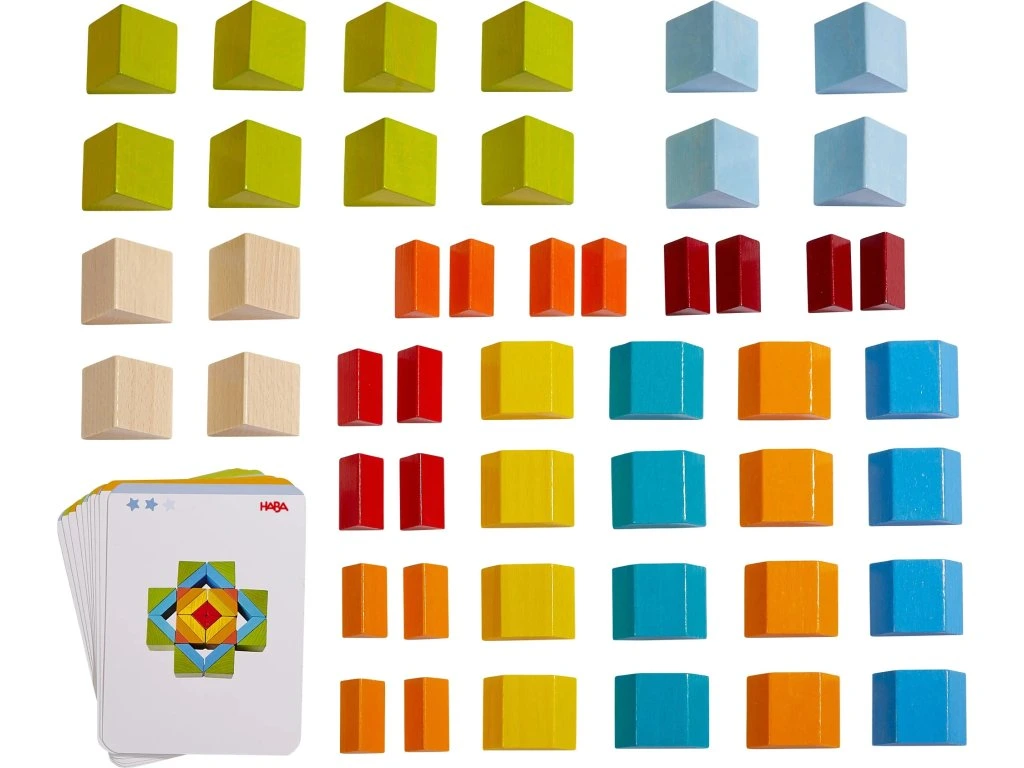 - 48 dřevěných bloků různých tvarů a barev