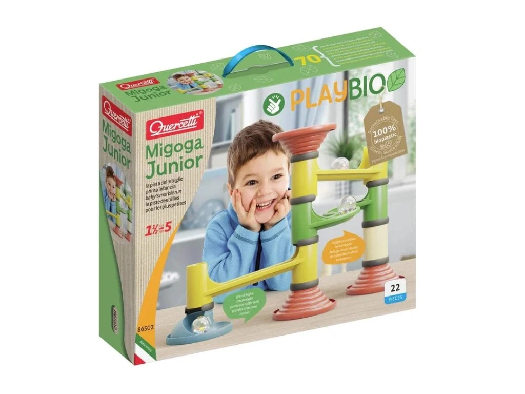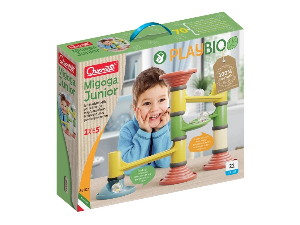 Stavebnice Migoga Junior je navržena tak, aby i menší děti mohly zažít radost ze hry s kuličkovou dráhou. Všechny díly jsou velké, barevné a snadno rozpoznatelné, což umožňuje jednoduché a intuitivní spojení a rychlou stavbu různých drah. Stavebnice je vyrobena z udržitelných a 100% recyklovatelných materiálů v rámci série PlayBio, čímž podporuje ekologické povědomí již od útlého věku.Hračka je vhodná pro děti od 18 měsíců a podporuje rozvoj jemné motoriky, smyslového vnímání a kreativity.