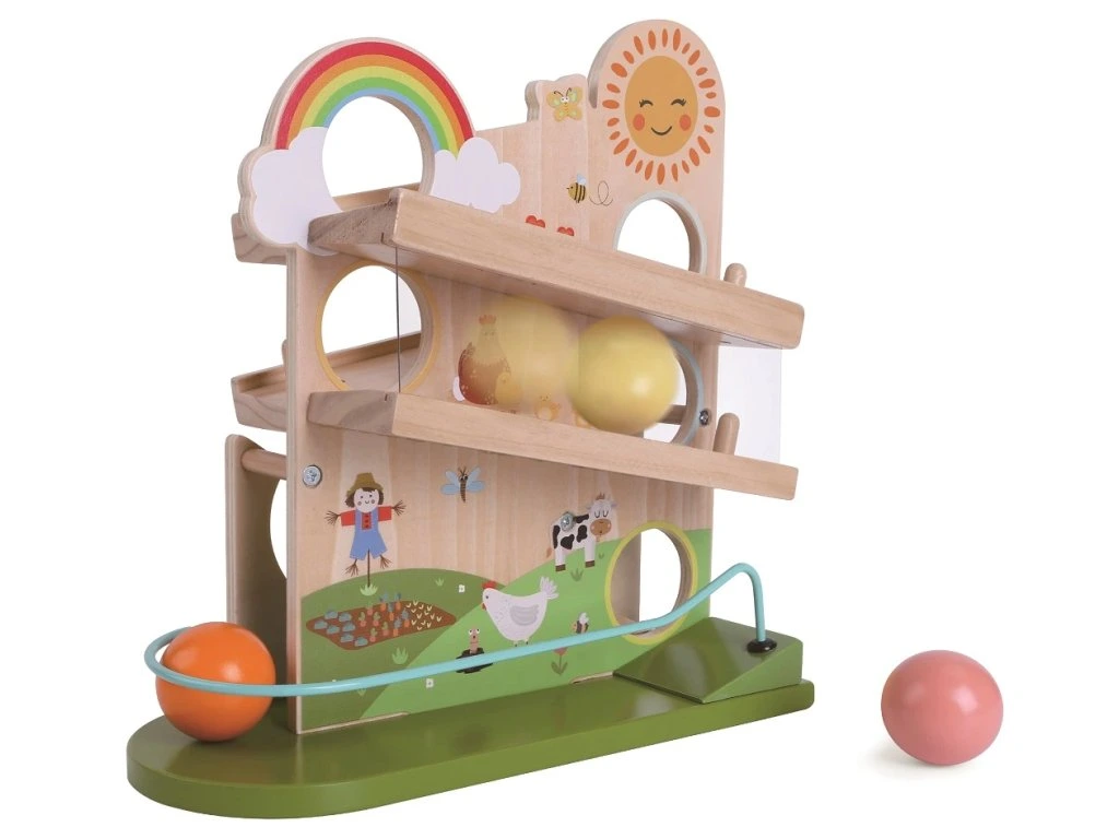 Objevte kouzelný svět farmy s touto kreativní kuličkovou dráhou, která potěší děti i dospělé. Veselé farmářské motivy a roztomilá zvířátka vytvářejí hravou scénu, kde se kuličky kutálejí, skáčou a svištějí po klikatých cestičkách.