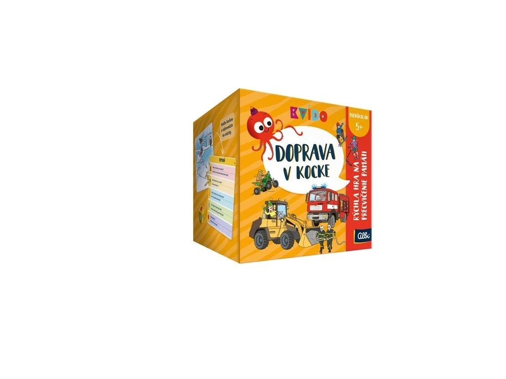 Hry Kvído V kostce navazují na oblíbené hry V kostce, ale tentokrát jsou propojené s oblíbenou dětskou postavou chobotničky Kvída. Na každé ze 60 ilustrovaných karet jsou znázorněny informace z určité oblasti. Hráči mají patnáct sekund, aby si z ní zapamatovali co nejvíce, a zvládli odpovědět na jednu až dvě vylosované otázky. Pokud si na hrací kostce hodí obrázek Kvída, nastává bicykl s bonusovou Kvídovou paměťovou hrou. Tu hrají všichni hráči zároveň - snaží se pokrýt svou kartu správnými žetony podle toho, jak si zapamatovali předlohu.Kvído V kostce obsahuje: 60 karet s obrázky i otázkami k danému tématu, 20 oboustranných bonusových karet pro Kvídovu paměťovku, 4 bodovací karty, 32 obrázkových žetonů pro bonusovou úlohu, 40 bodovacích žetonů, 1 přesýpací hodiny na 15 sekund a 1 Kvídovu hrací kostku.