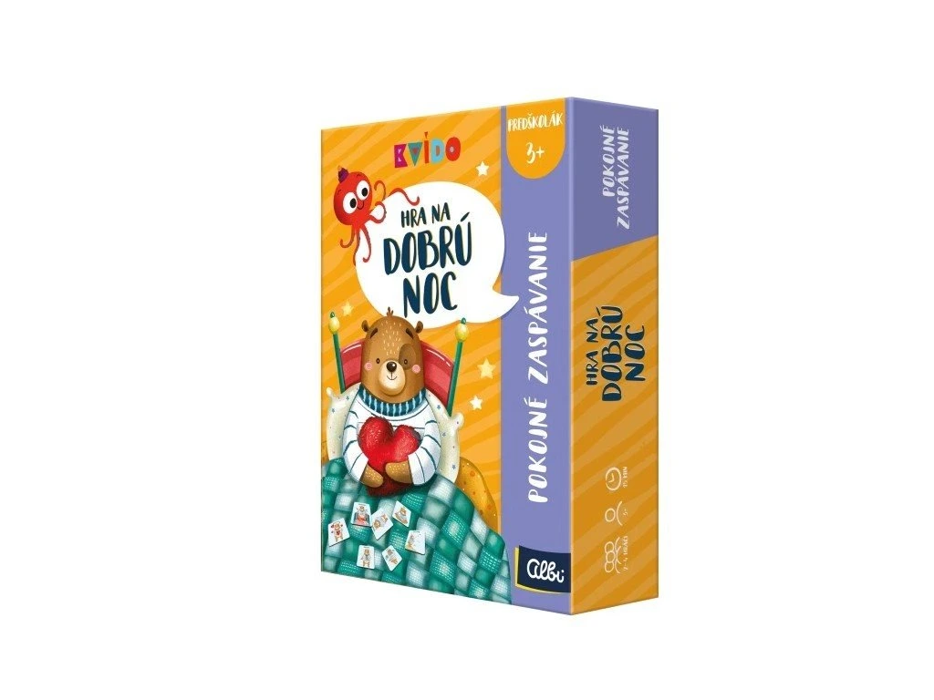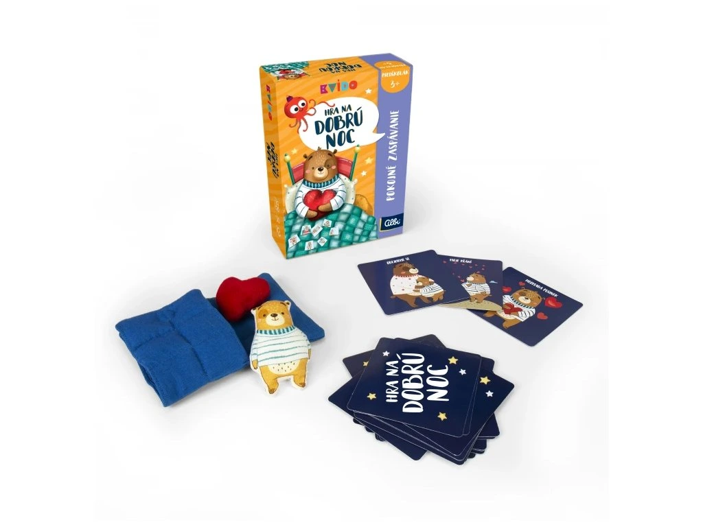 Jedinečná hra před usínáním, která zpestřuje společné chvíle dítěte s rodiči. Dokonalý způsob, jak zakončit den. Dítě se uklidní a ujistí se, že je milované. Hra je pokaždé jiná. Aktivity se každý večer střídají a může je dělat dítě i dospělý. Děti v této hře postupně obracejí karty s aktivitami, dokud nenajdou 3 karty toho, co potřebuje medvídek na to, aby usnul: polštářek, přikrývku a srdíčko. Potom uloží medvídka do postýlky a vy si společně užijete vybrané aktivity, například zpívání, uvolňující jógu nebo dýchání, podělíte se o zážitky z celého dne, dáte si pusinky a objetí a možná se necháte i pošklít. Hra obsahuje textilního medvídka, peřinku s polštářkem a plyšové srdíčko.Hra se skládá z 23 kartiček s různými úkoly a aktivitami a přehledové kartičky s jógovými pozicemi a vědomým dýcháním.