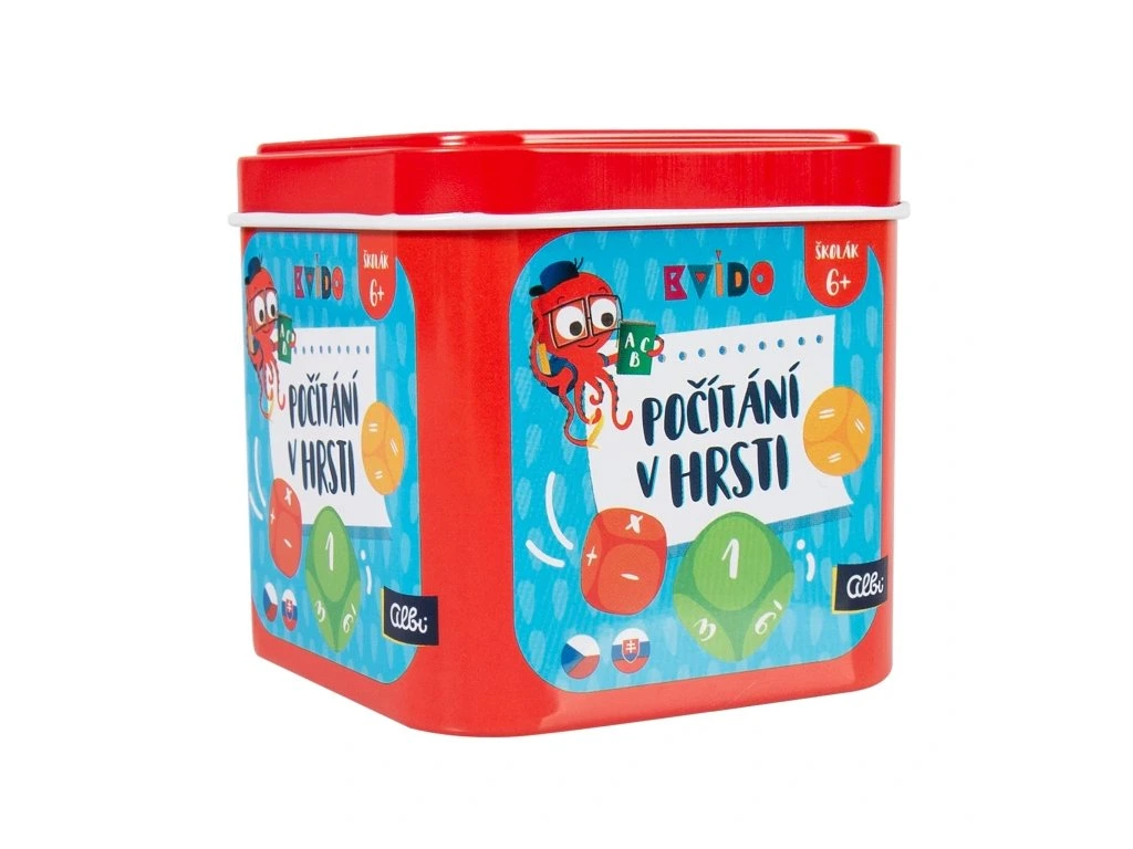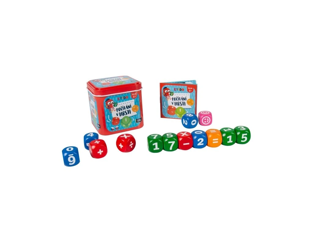 Hoď třinácti kostkami a sestav z nich co nejdelší rovnici. S kostkami můžete hrát 4 různé hry: Všichni naráz, Navyš o jednu, Rovnicové Yatzy (Solitér), Kvídův velký turnaj.Hra obsahuje: 13 dřevěných kostek (4 zelené s lichými čísly, 4 modré se sudými čísly, 3 červené kostky s matematickými operacemi, 1 oranžovou kostku se znakem =, 1 růžovou kostku se znakem žolíka, česká a slovenská pravidla 4 her)