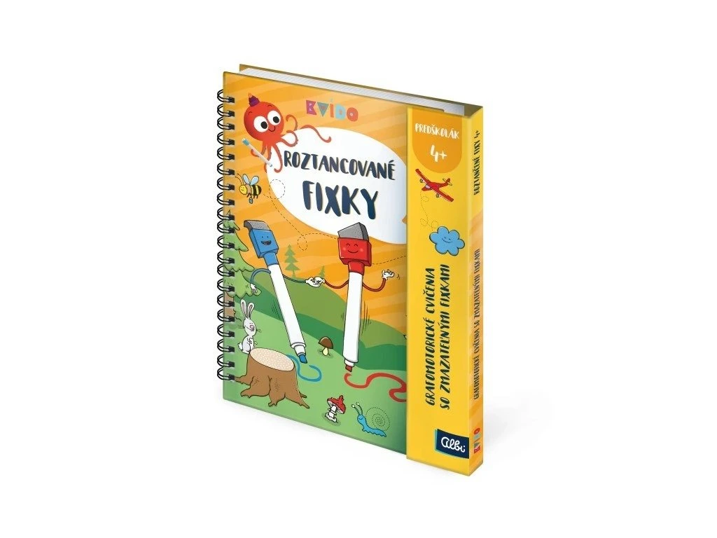 Publikace Roztancované fixky láká děti k různým cvičením, která rozvíjejí jemnou motoriku, grafomotoriku, kreslení a nácvik psaní. Na děti tu čeká celkem 50 poutavých úloh na zalaminovaných stránkách. Součástí publikace jsou i 2 smazatelné fixky s houbičkou – červená a modrá, díky kterým mohou děti úlohy plnit opakovaně a zdokonalovat se v nich. Na fixkách jsou silikonové násadky ve tvaru delfína, které podporují správné uchopení fixky během psaní. Roztancované fixky provázejí děti při každém cvičení, aby je vyplňování úloh bavilo ještě více.Roztancované fixky rozvíjejí: jemnou motoriku a grafomotoriku soustředěnou pozornost správné uchopení nástroje při psaní a kreslení