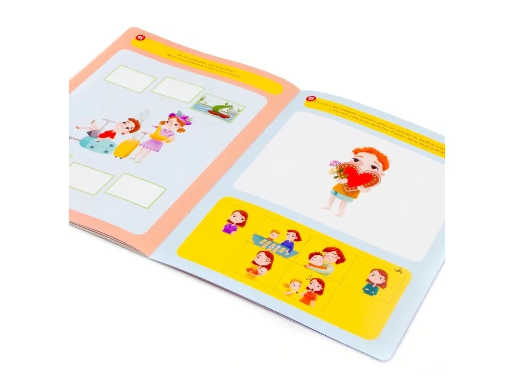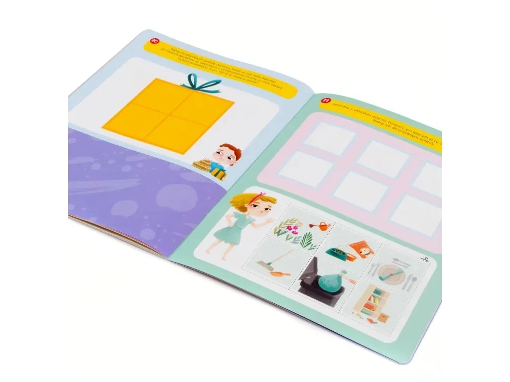 Samolepkové aktivity obsahují 24 stran s pestřými úkoly a doplňovacími aktivitami, které pobaví a podpoří tvořivost dětí. Sešit obsahuje 138 samolepek a vystřihovacích prvků s motivy rodiny a zvířátek, které je možné podle fantazie nalepit nebo doplnit do aktivit.