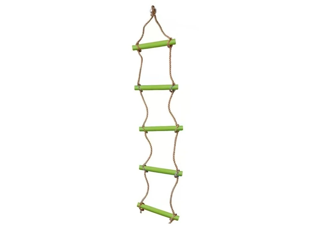 Tento lanový žebřík s 5 plastovými příčkami v zelené barvě je skvělým doplňkem každého dětského hřiště nebo domku na stromě. Podporuje aktivní pohyb venku a přináší dětem spoustu zábavy při lezení a šplhání.