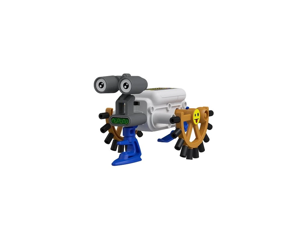 Stavebnice minirobotem, který leze zábavným způsobem, je určena pro děti od 8 do 12 let. Jednotlivé části robota se do sebe bleskově zacvaknou. Motor je napájen bateriemi. Kam to leze? A opravdu je postavený z lyží, žehličky a zlomeného volantu? Jednoduché, zábavné a bláznivé zároveň!