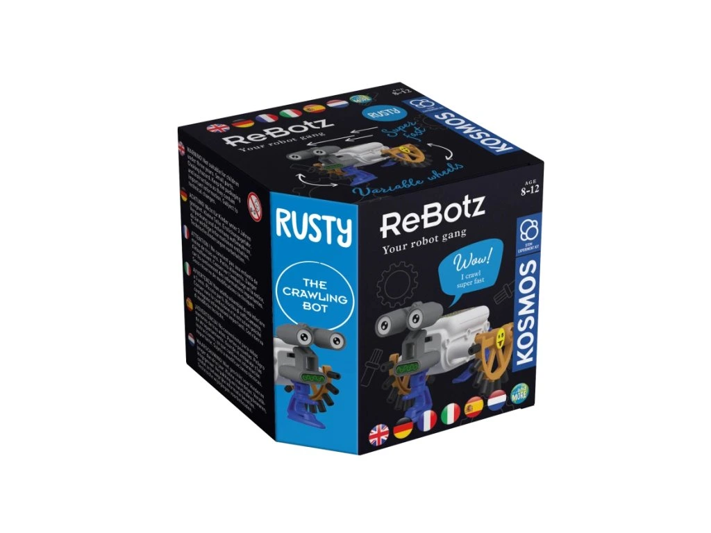 Obzvlášť vtipné bude, když si Lezoucí robot Rusty vymění části těla s částmi těla jeho tří kamarádů ze série Rebotz! Robo Gang Rebotz od německého výrobce KOSMOS, to jsou 4 roboti ze šrotiště, kteří vdechnou nový život starým dílům, ze kterých jsou vyrobeni. S parádními nálepkami, díky kterým ReBotz vypadá ještě drsnější!