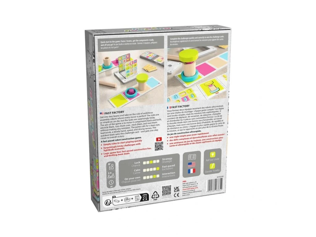 Staňte se montážními roboty! Hráči se rozdělí do dvou týmů a převezmou úlohu vysoce ambiciózních montážních robotů, kteří přesně vědí, jak vykonat každý pohyb. Pravidla jsou jednoduchá, ale úkoly překvapivě složité. Cílem je přesunout čtyři komponenty tam a zpět, převrátit je, naskladat a vložit do sebe bez chyby. Klíčem k úspěchu jsou přehled, týmová spolupráce, pevná ruka, rychlost a pevné nervy. Rychlejší tým vyhrává kartu mise a přiblíží se k vítězství.