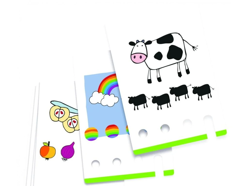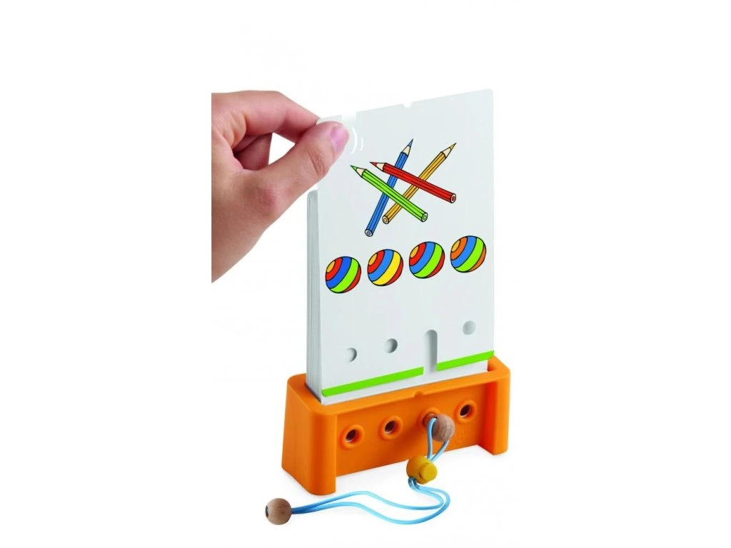 - Možnost zkontrolovat správnost odpovědi pomocí dřevěné špendlíku a vytahovací karty