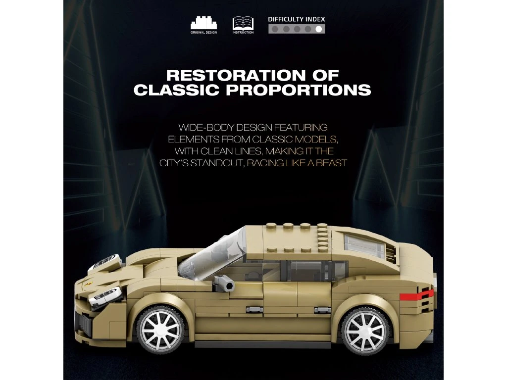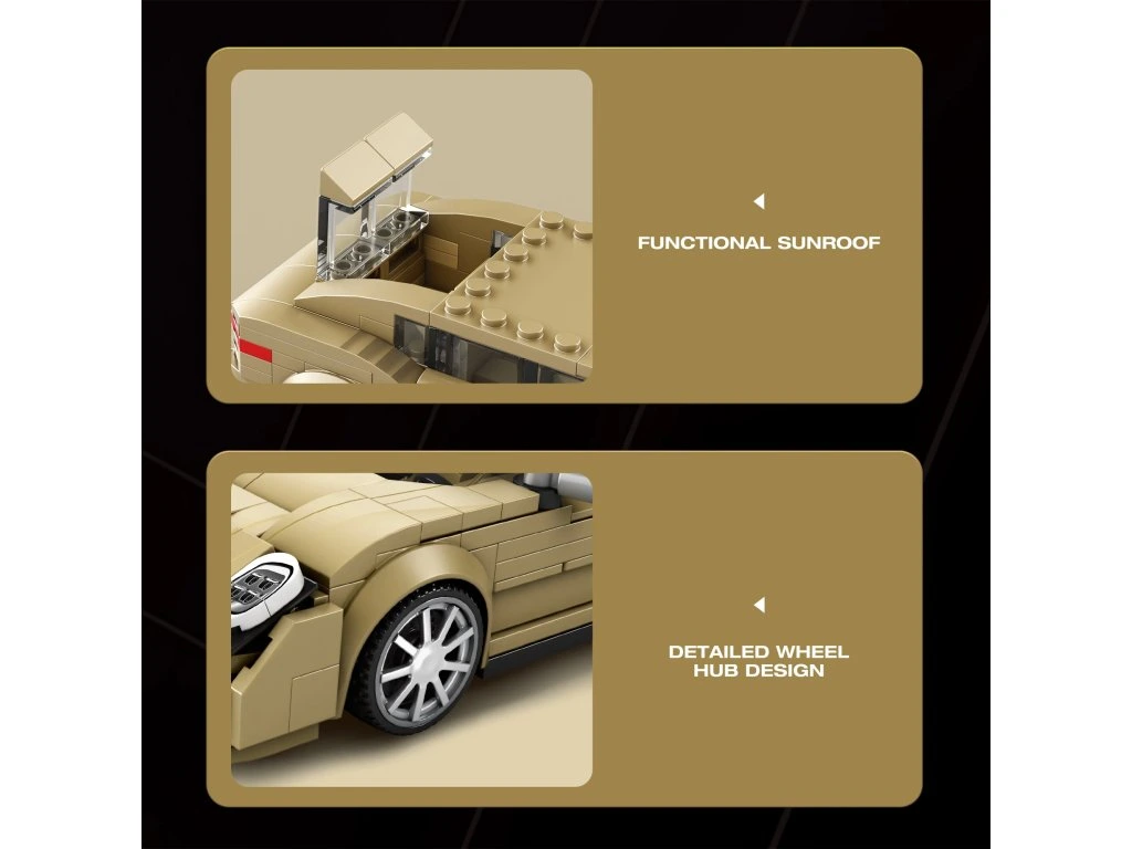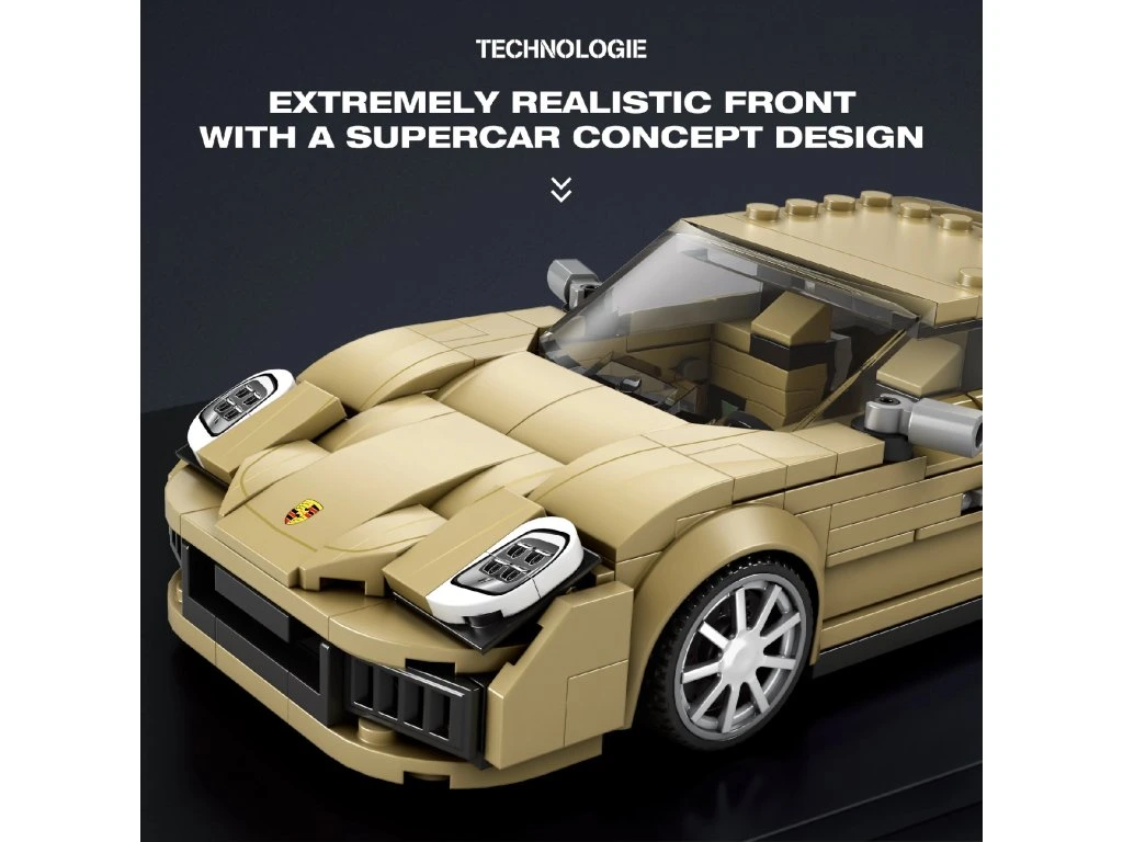 - Dizajn inspirovaný sportovní limuzínou Porsche Panamera – elegantní silueta, nízká linie střechy a dynamická karoserie působí autenticky i v měřítku stavebnice