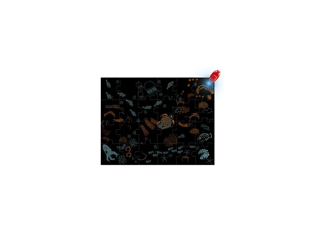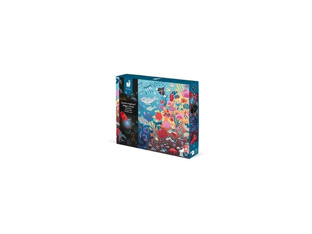 Puzzle a 24-dílná mořská magická hádanka. Zapněte malou čarovnou lampu a prozkoumejte hlubiny oceánů! Lampa oživí puzzle a umožní dětem objevovat obrázky skryté v puzzle. Puzzle 2 v 1, které je zábavné a rozvíjí zvědavostVhodné pro děti od: 3 let