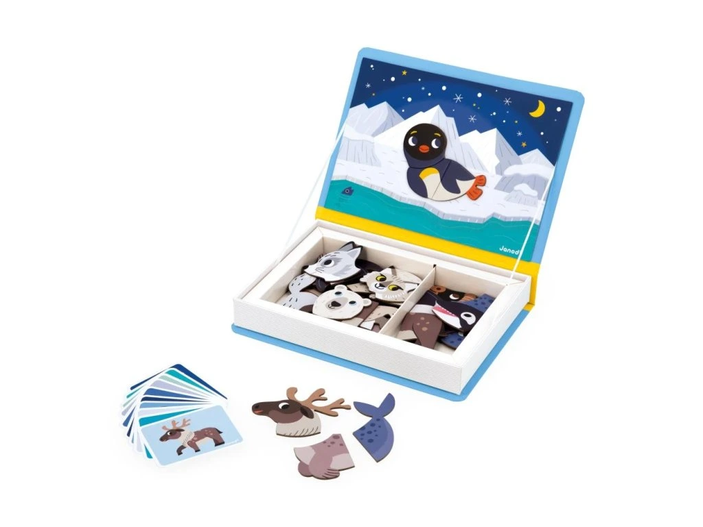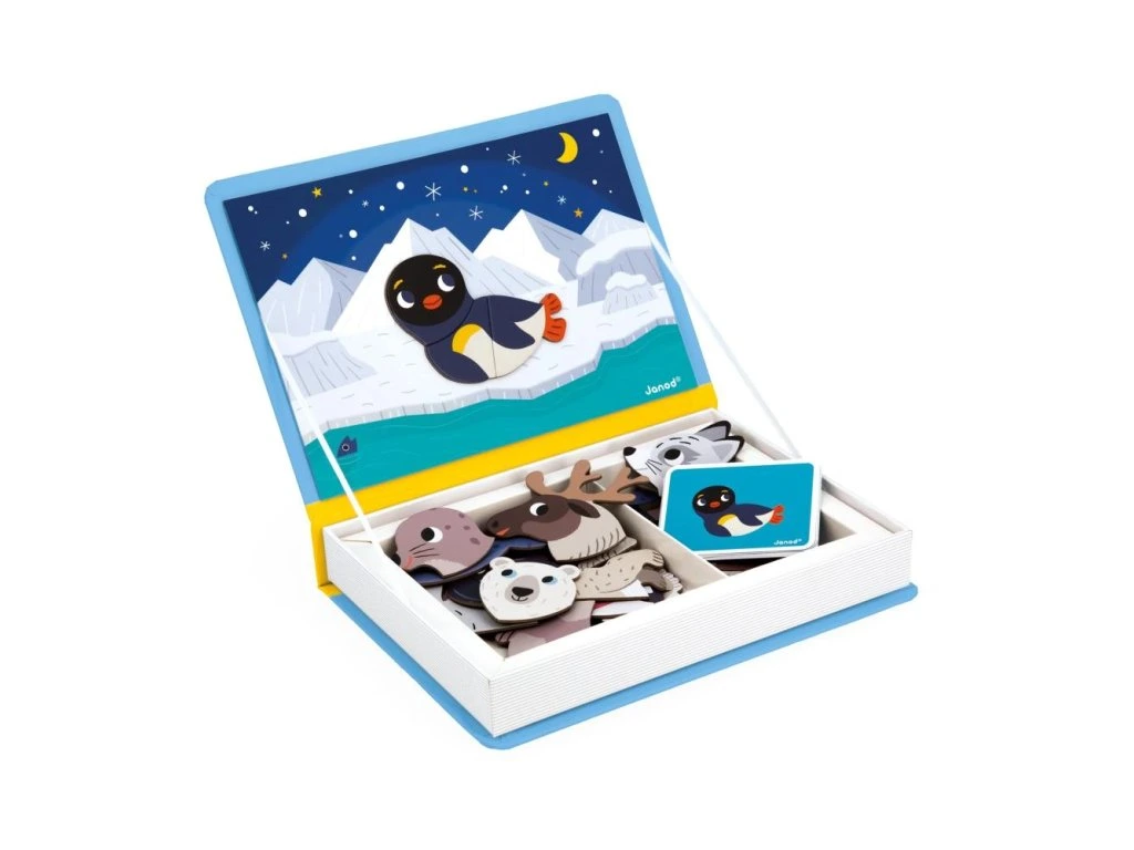 ❄️ Objevte fascinující svět Arktidy a Antarktidy!S touto kreativní magnetickou knihou Magneti'book – Polární zvířata se děti seznámí s obyvateli chladných oblastí a zároveň si rozvíjejí fantazii, jemnou motoriku i schopnost kombinovat.