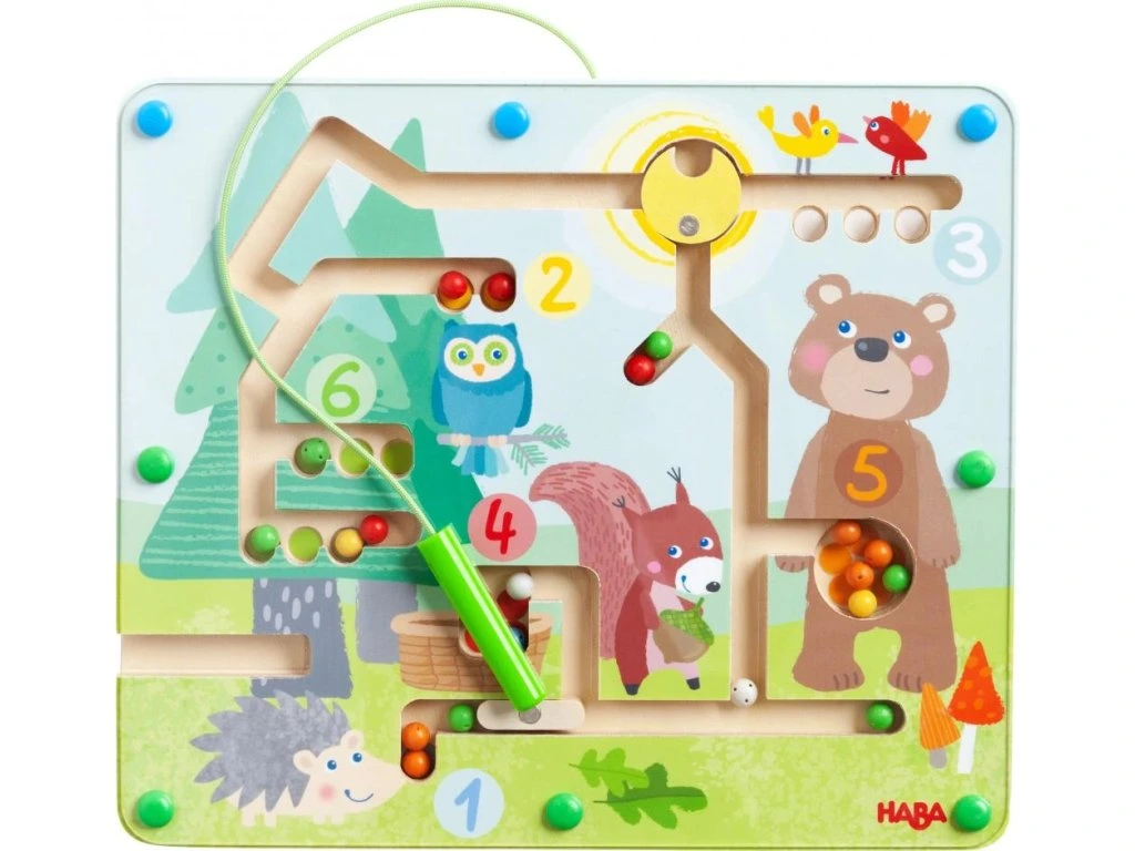Kdo by chtěl jít na procházku lesem? Malí průzkumníci mohou pomocí magnetického pera posunovat malé barevné kuličky přes koruny stromů a přes lesní porost k příslušnému lesnímu zvířátku. Například ze tří bílých kuliček se stanou vajíčka ve ptačím hnízdě. Je to skvělá zábava a děti to naučí barvy i čísla od 1 do 6.Doplňkové parametry