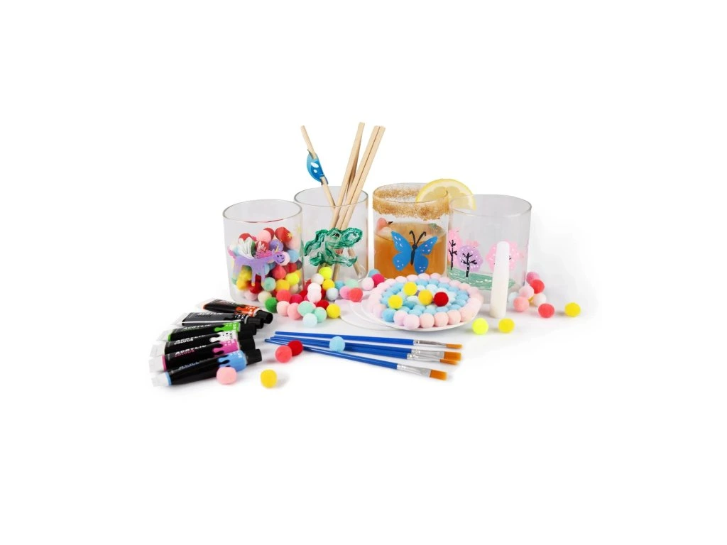 Vytvořte si vlastní nápojovou sadu a zažijte hodiny kreativní zábavy! Děti si mohou vyzkoušet techniku malování na sklenice, míchání barev, výroby podtácků a zdobení brček. Sada je vhodná pro jednotlivce i skupiny dětí a podporuje fantazii, jemnou motoriku a tvořivost.
