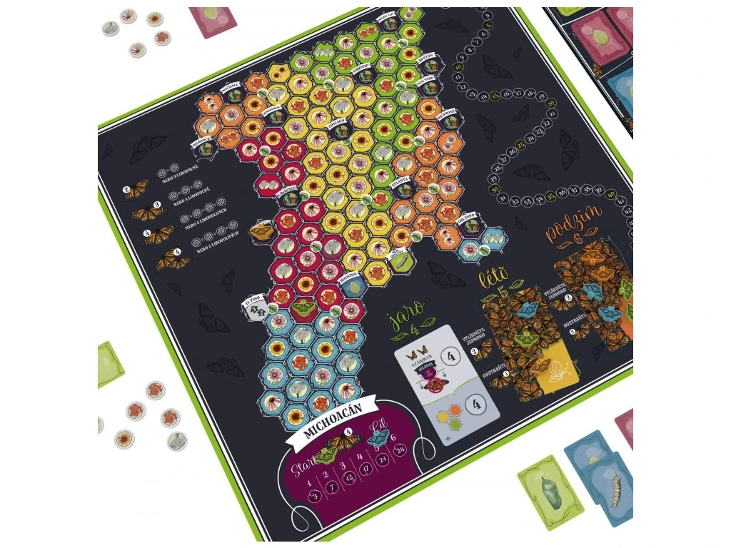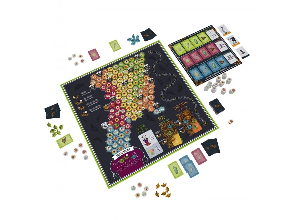 Každé jaro miliony motýlů Monarchů stěhovavých opouští Mexiko a vydávají se na pouť do východní poloviny Severní Ameriky. Každý podzim se pak miliony z nich vrací zpět do svých mexických zimovišť. Tuto okružní cestu však žádný z jednotlivců, kteří se na ni vydají, nedokončí.HERNÍ MECHANISMUS: Mariposas™ je společenská hra, která hráčům pomocí pohybu po hrací desce a sbírání sad karet umožní tuto úžasnou cestu zažít.
