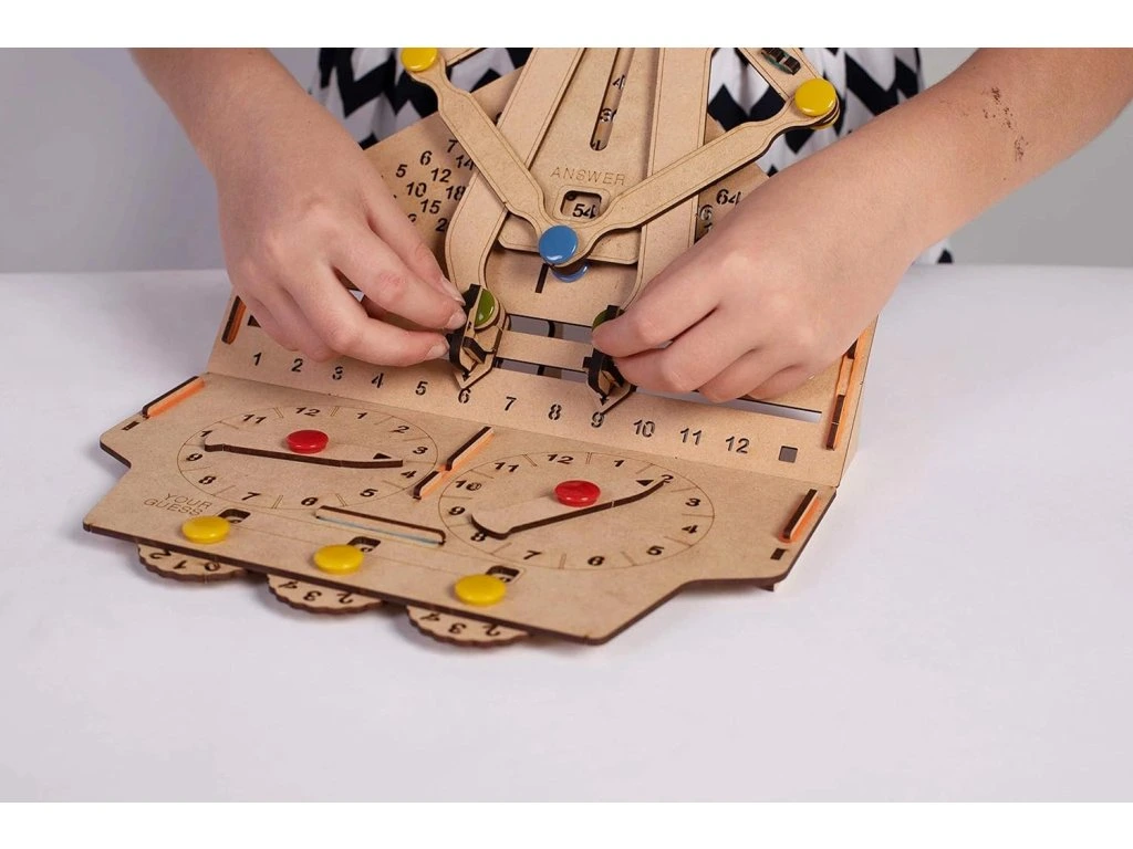 Naučte se násobilku zábavným a vzrušujícím způsobem s touto vzdělávací dětskou hračkou. Sestavte příklad na násobení, otočte číselníkem a hádejte odpovědi dříve, než pohnete rukami, abyste odhalili správnou odpověď.