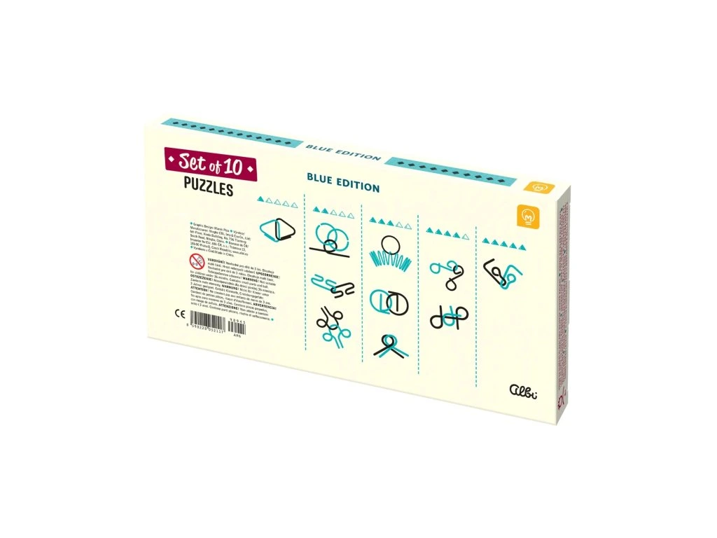 Modrá sada 10 hlavolamů z edice Mozgovňa je ideální pro procvičování zručnosti, pozornosti a jemné motoriky. Tato sada potěší vás i vaše blízké, kteří mají rádi logické výzvy a hádanky.