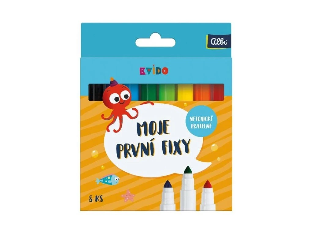 Moje první fixky od Kvída jsou netoxické a snadno pratelné, určené pro výtvarné a umělecké činnosti. Balení obsahuje 8 kusů fixek v různých barvách.Doplňkové parametry