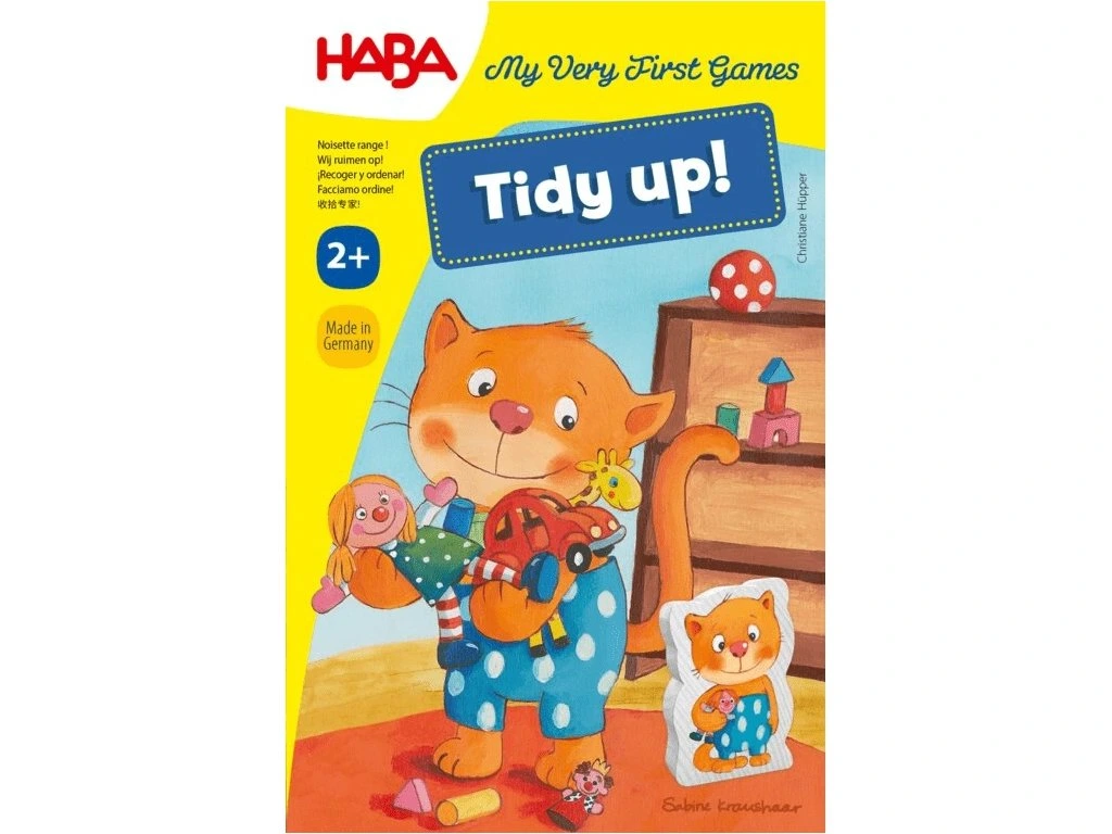 Malý kocourek Tiptop si hraje celý den. Teď je čas na uklízení! Ale kam umístit jednotlivé kartičky? Kam patří hasičská stanice? A kam žirafa? Povídejte si s dítětem, kam obrázek na kartičce patří a potom požádejte dítě, aby vložilo kartičku do správné přihrádky.