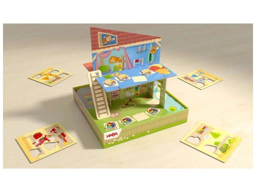 Pestrý soubor 10 her pro 1–4 děti od 2 let. Hra ze série Moje první hry umožní vašemu dítěti vyvíjet se v hravém prostředí. V návodu najdete množství tipů, jak společně objevovat jednotlivé hry. Hra stimuluje rozpoznávání a rozlišování barev, přesné pozorování, volné vyprávění a první porozumění pravidlům. 3D uspořádání zároveň trénuje koordinaci ruka-oko a prostorové vnímání při přesouvání figurek po Duhové školce. Kooperativní hra učí děti spolupracovat, dělit se o emoce a návrhy řešení a růst jako tým. Hraní je především zábavou, zároveň podporuje přirozené učení.