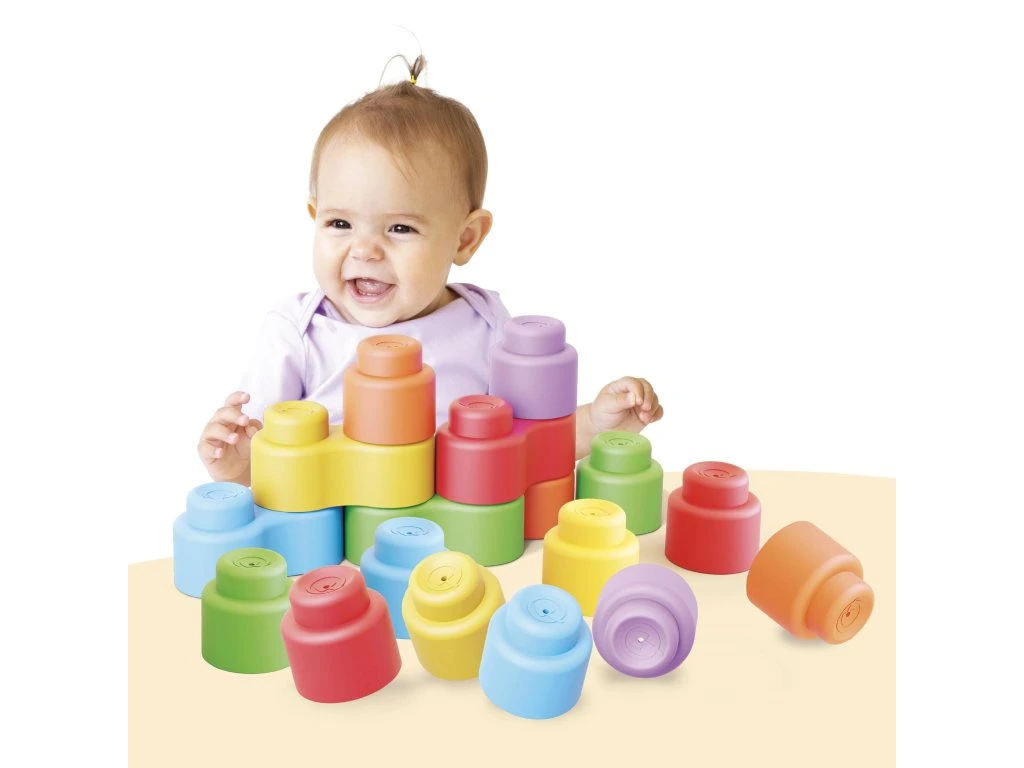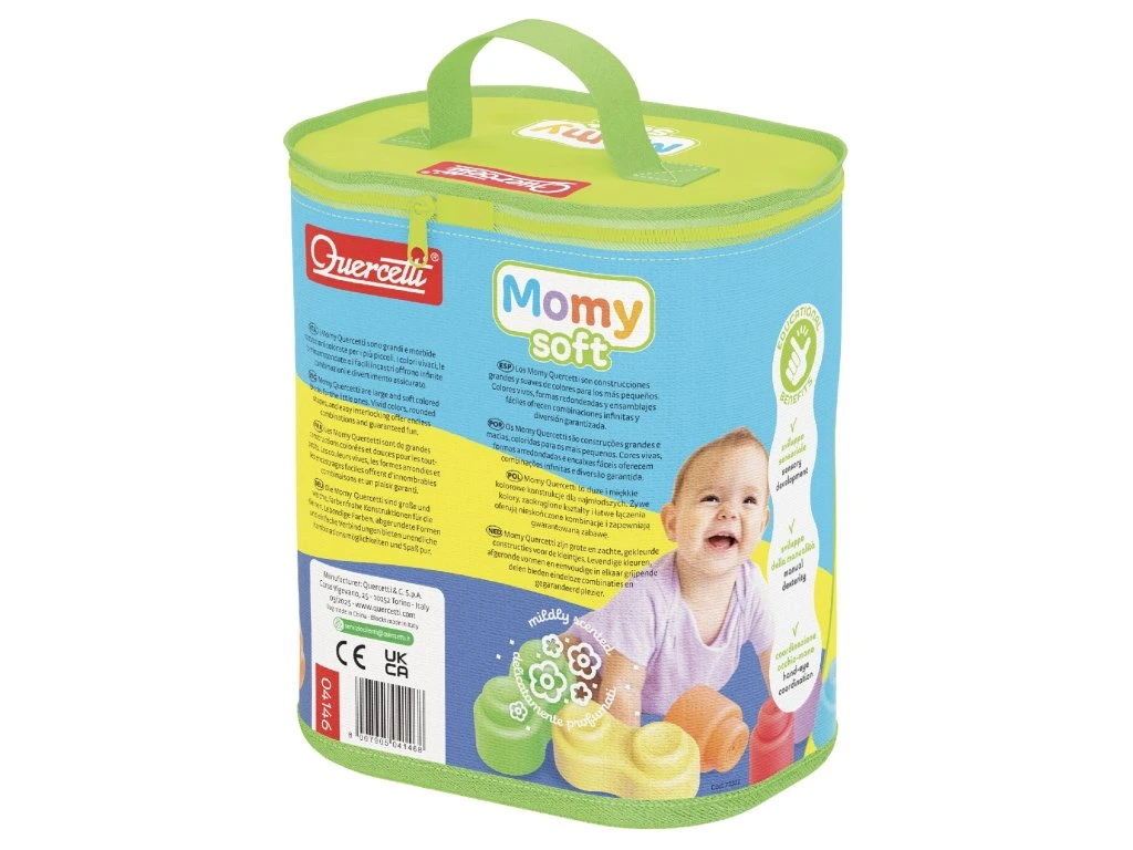 Momy Soft Bag od Quercetti je perfektní hračka pro miminka a batolata ve věku 6 až 36 měsíců. Tato sada obsahuje 28 velkých, měkkých a barevných bloků vyrobených z bezpečného materiálu, navržených tak, aby stimulovaly smyslový, motorický a kognitivní vývoj. Každý prvek má zaoblené tvary a snadno uchopitelné povrchy, ideální pro malé ručičky.