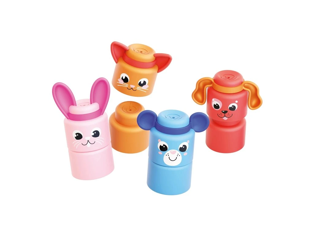 Zvířata chtějí ukázat, jak umí postavit vysokou pyramidu! Kdo postaví tučňáka na krokodýla, ovci na vrch tučňáka, hada na ovci? Počet hráčů: 2-4 osoby.