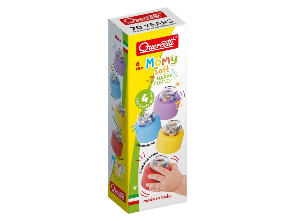Momy Soft Happy Sound představují velké a měkké barevné kostky, které jsou ideální pro nejmenší děti. Hrací prvky zaujmou pozornost jasnými barvami a tvary, poskytují bezpečnou hru a zábavu. Každá kostka je vyrobena z měkkého materiálu, takže si děti mohou hrát bez rizika poranění.