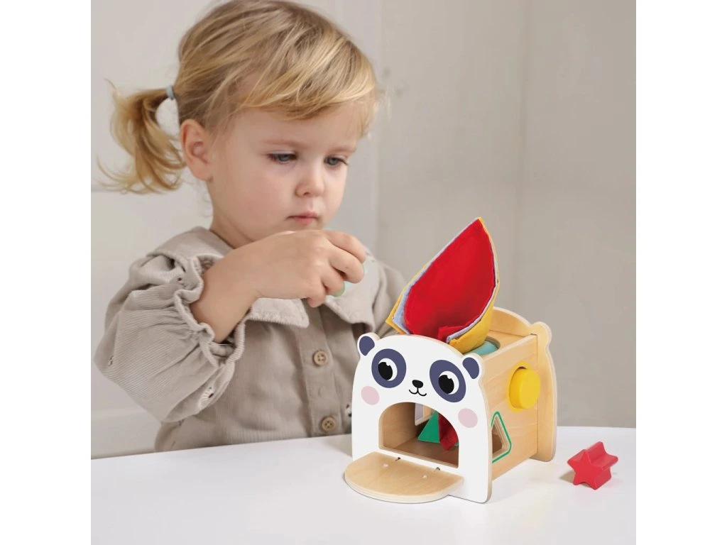 Milují vaše děti vytahování kapesníčků? Dopřejte jim tuto zábavu každý den bez neustálého doplňování zásob. Dřevěná motorická kostka v designu pandy se sadou látkových „kapesníčků" děti nejen zabaví, ale také rozvíjí jejich schopnosti.