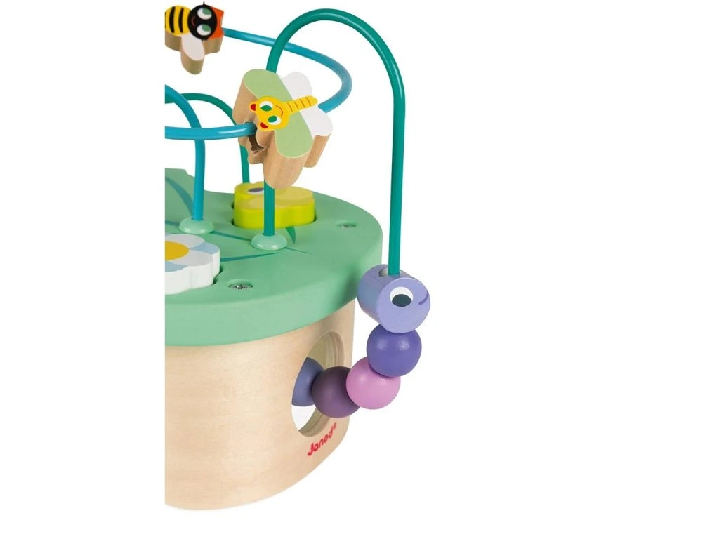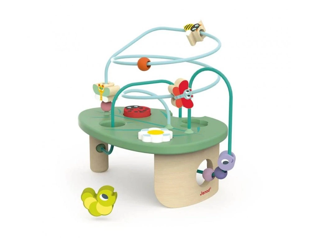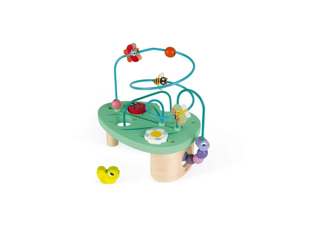Tato atraktivní hračka pomůže vašemu dítěti při zábavě rozvíjet koncentraci a motorické schopnosti. Má design ve tvaru listu, který evokuje jaro, má dva dráty s korálky ve tvaru motýlů, housenku a ptáčka, které přes strukturu klouzají.Má také 3 dílky (květina, housenka, beruška), které zapadají do vrchní části a pomáhají rozvíjet obratnost a zručnost.