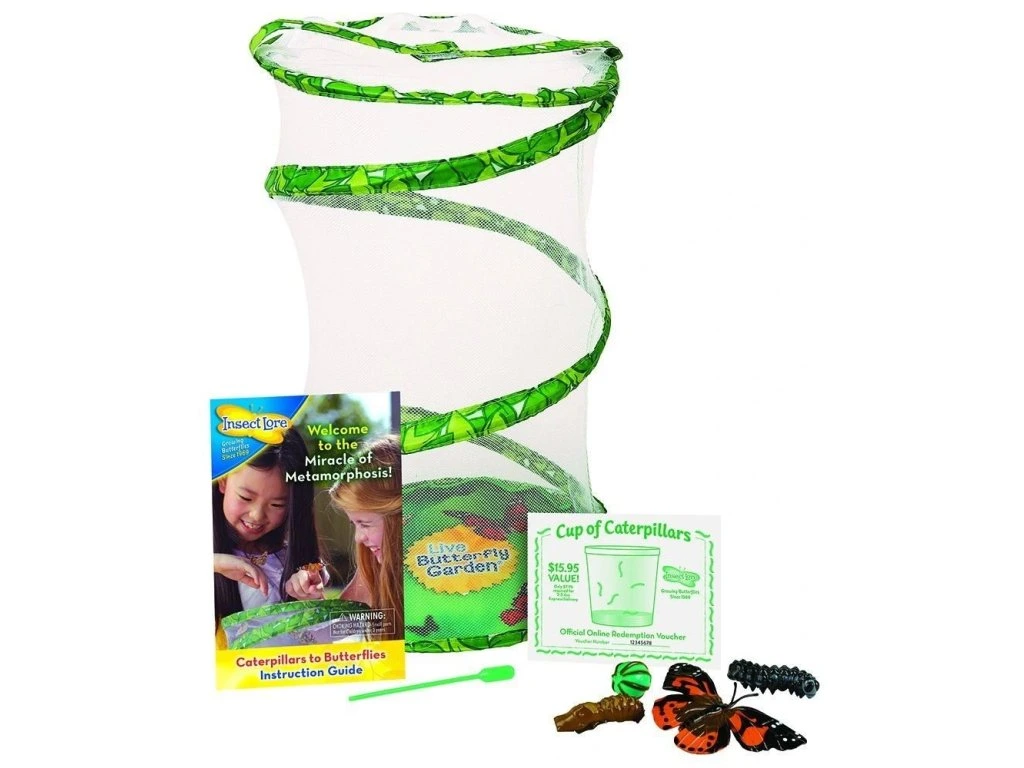 Motýlí zahrádka je experimentální/vzdělávací sada, která nabízí praktickou zkušenost s chovem ŽIVÝCH motýlků od housenek až po vylíhnutí a vypuštění zpět do přírody. V přírodě není až tak velký problém vidět motýly a při troše úsilí narazíte i na nějakou tu housenku.