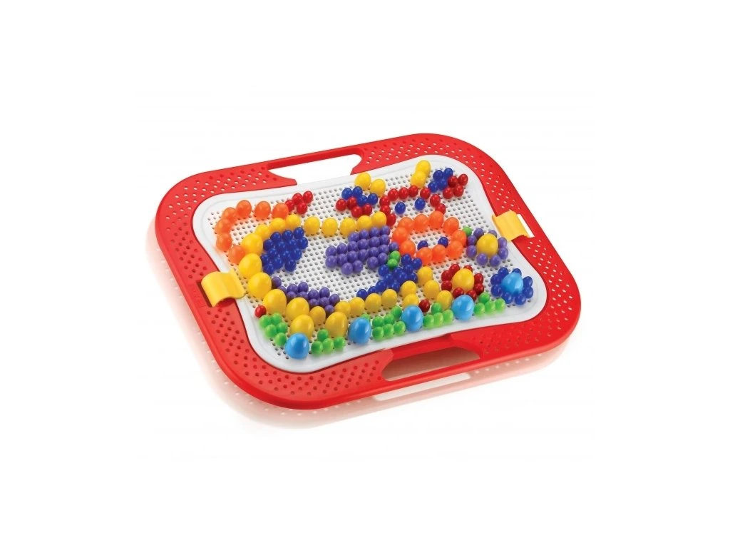 Mozaiky jsou skvělou hračkou, která pomáhá dětem rozvíjet jemnou motoriku, tvořivost a fantazii. Souprava se skládá z praktického kufříku, děrované hrací desky a barevných kolíčků s hlavičkami různých barev, průměrů a tvarů. Děti mohou pomocí těchto kolíčků, které se zasazují do otvorů na hrací desce, vytvářet různé obrázky a vzory podle vlastní fantazie a kreativity.Po skončení hry je možné všechny části jednoduše uložit do kufříku, přičemž jeho víko, zajištěné pojistkou, slouží jako hrací deska. Mozaiky jsou vyrobeny z plastů špičkové kvality, což zaručuje bezpečné a dlouhodobé používání. Tato hračka poskytuje dětem zábavu a zároveň podporuje rozvoj jejich zručností a kreativity.