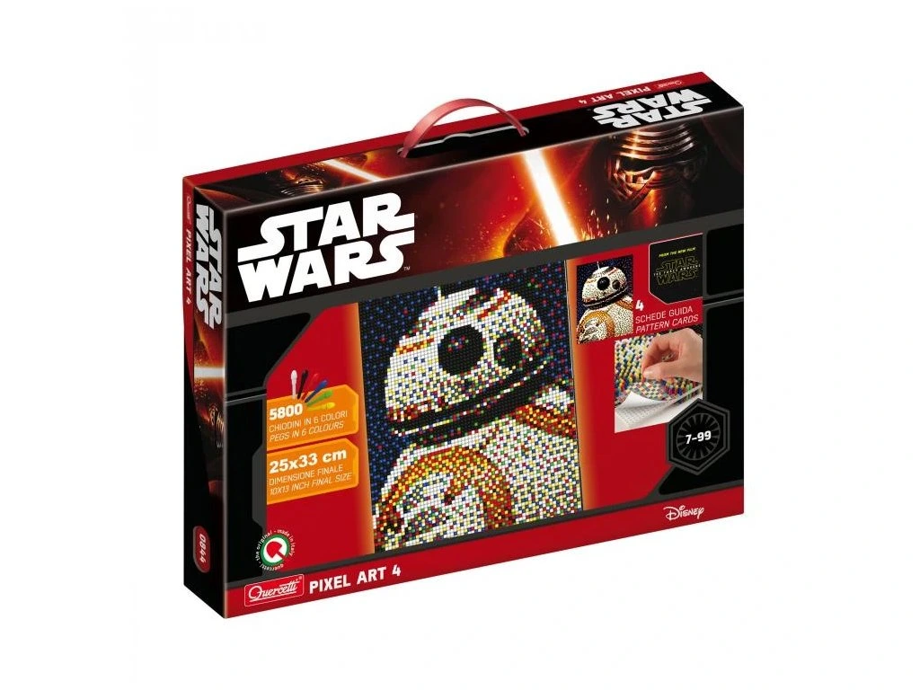 Díky Pixel Art si mohou dospělí i děti vytvořit úžasné portréty hrdinů Star Wars pomocí slavných kolíčků značky Quercetti. Stačí vystřihnout vzorové karty, rozložit je na perforované základní desky a vložit kolíčky. Kolíčky jsou jen v šesti barvách, ale při pohledu ze správné vzdálenosti vytvoří dojem tisíců nových barev a odstínů, čím připomínají skutečnou fotografii. Pixel Art využívá princip optického míšení barev, podobně jako malíři směru pointilismus z konce 19. století. Namísto olejových barev se používají kolíčky, ale výsledek je stejně fascinující.Každé balení obsahuje spojovací prvky, které umožňují spojit portréty více hrdinů do jednoho panelu. Výrobky Pixel Art splňují vysoké standardy kvality a bezpečnosti a dodají vašemu domovu jedinečný umělecký prvek.